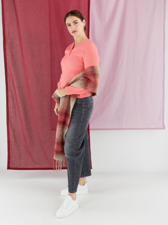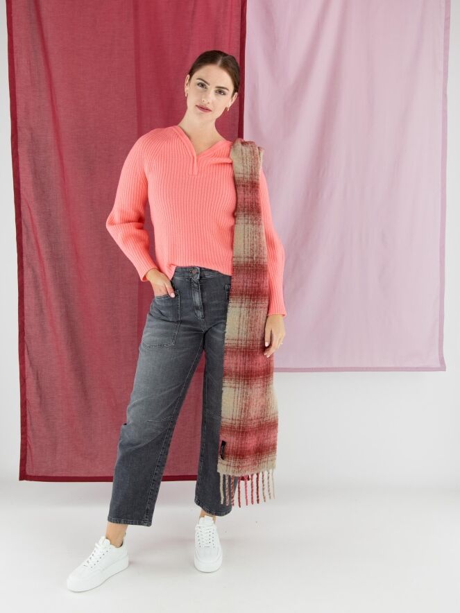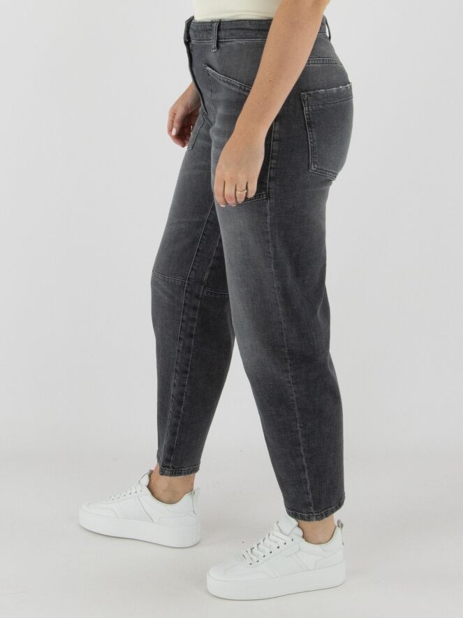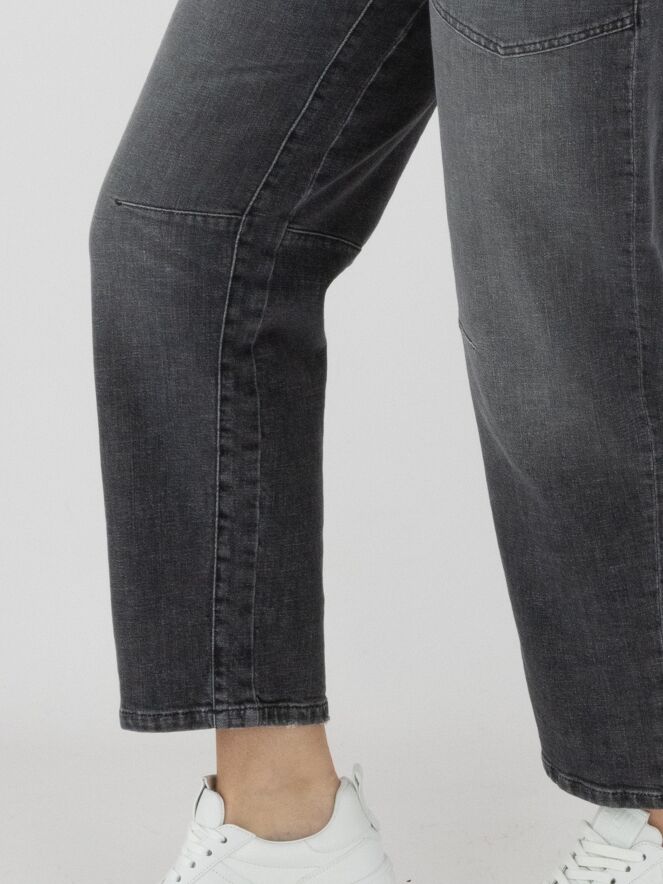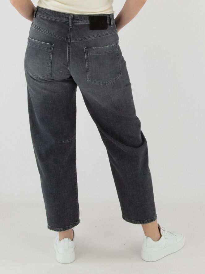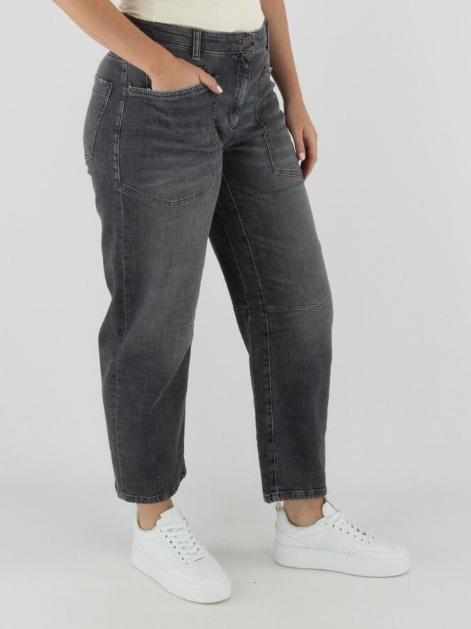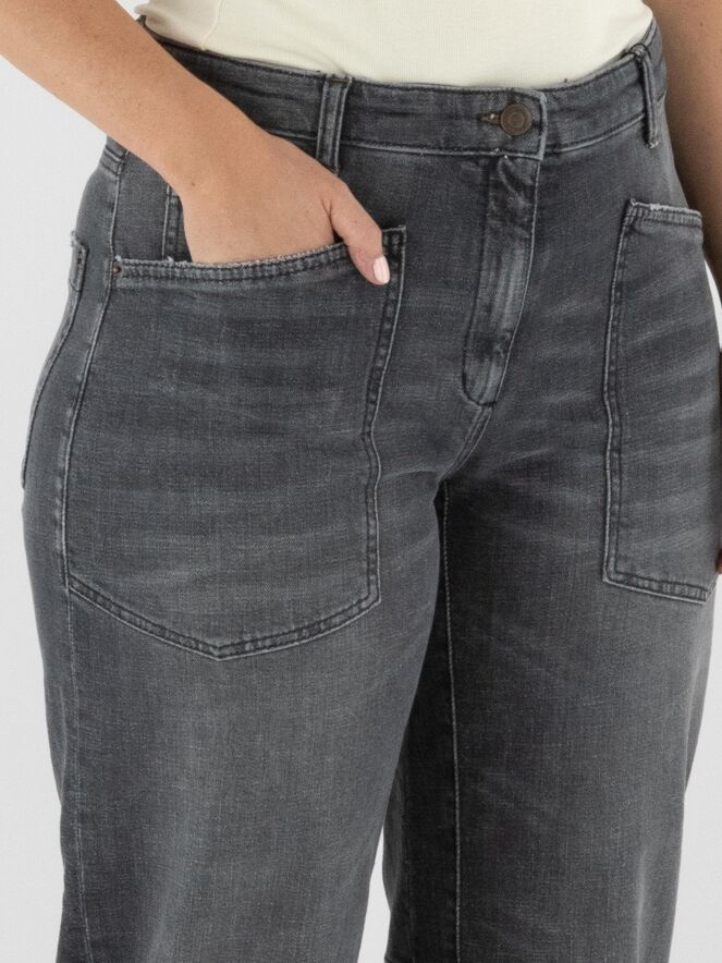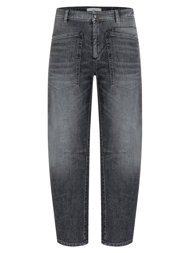 A used-look grey jeans by Cambio in a classic 5-pocket style with diagonally cut front pockets. A dart seam runs across the knees. These jeans can be washed at 30 degrees.