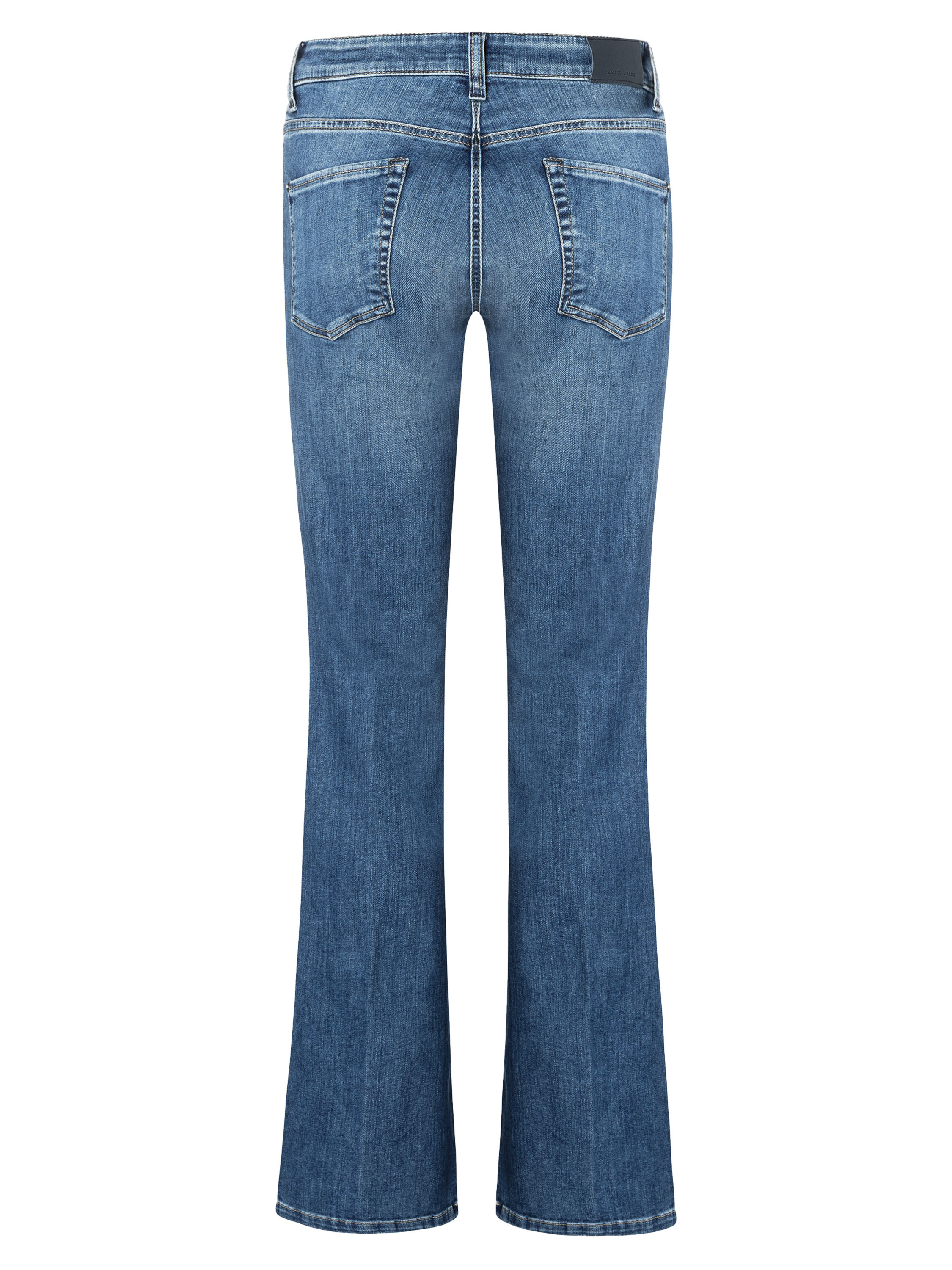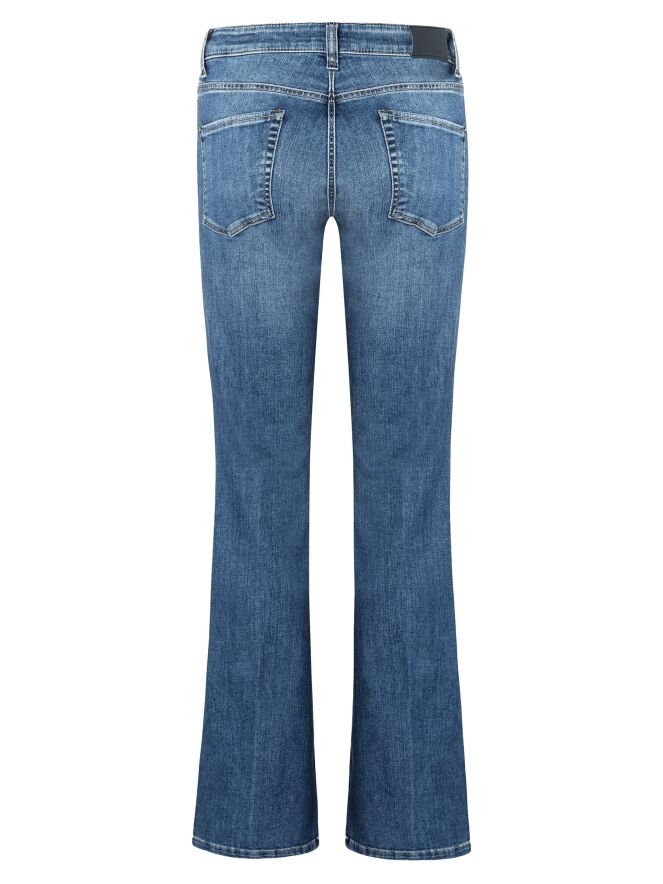 A flared jeans from Cambio in a 5-pocket style. The jeans have a used look. The stitching is in a cognac colour. These jeans can be washed at 30 degrees.