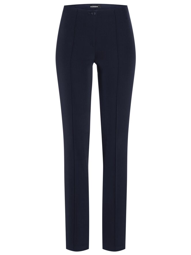 Cambio trousers in the color navy blue. At the waist is an elastic band. There is a stitching over the center of the legs. these pants can be washed by hand.