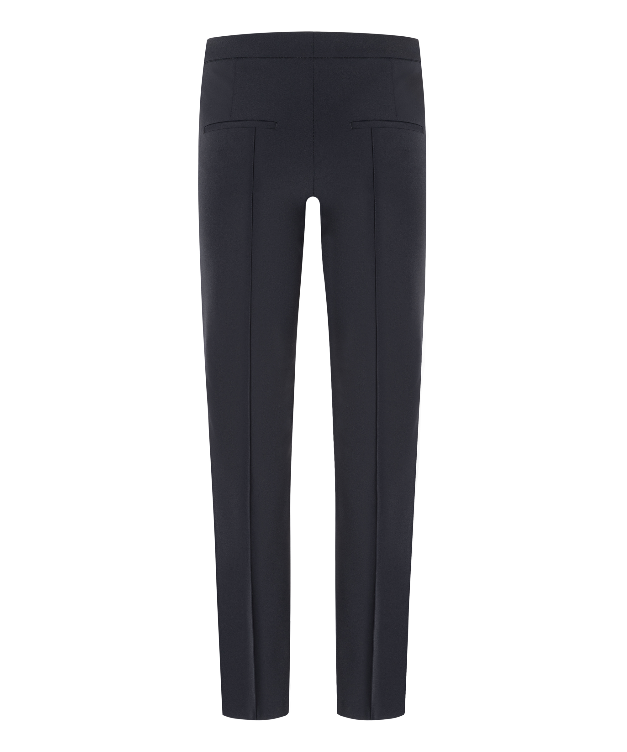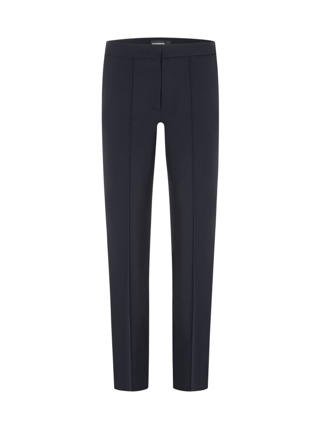 A slim-cut trouser from Cambio in black. An inverted seam runs down the center of the legs. The trousers have slit pockets and can be washed at 30 degrees.
