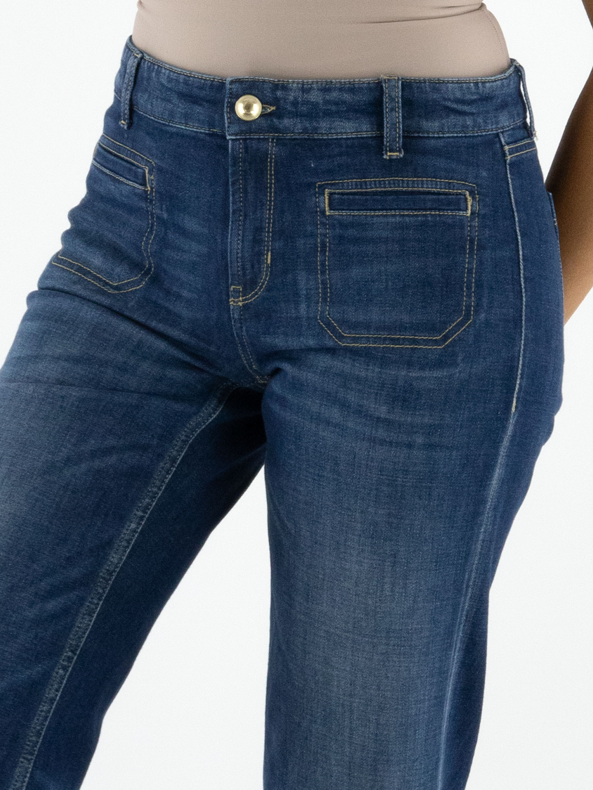 A washed denim by Cambio in a basic denim shade. The jeans have a straight cut and two small front pockets. They can be washed at 30 degrees.
