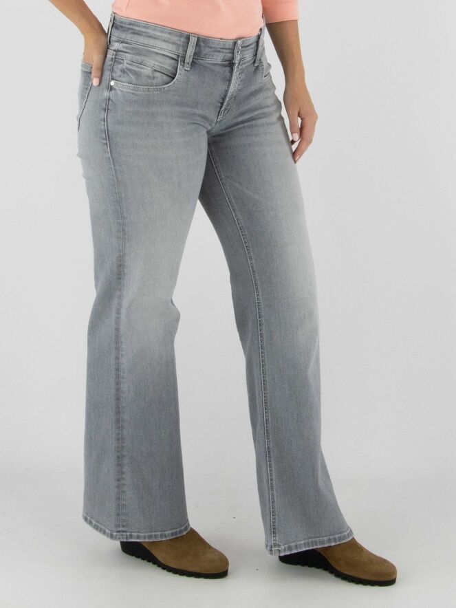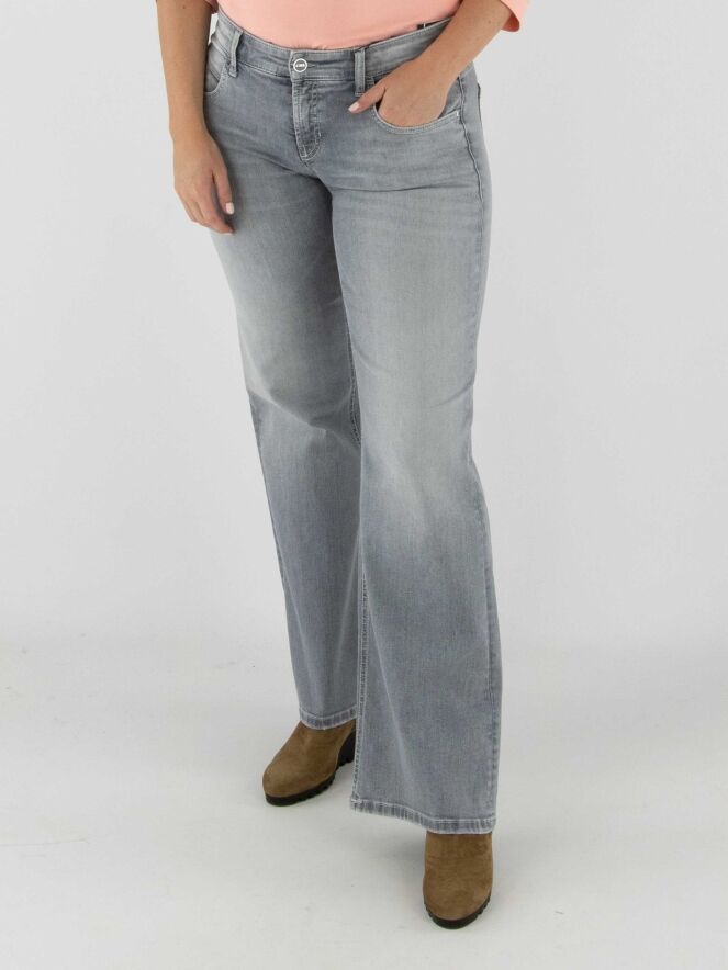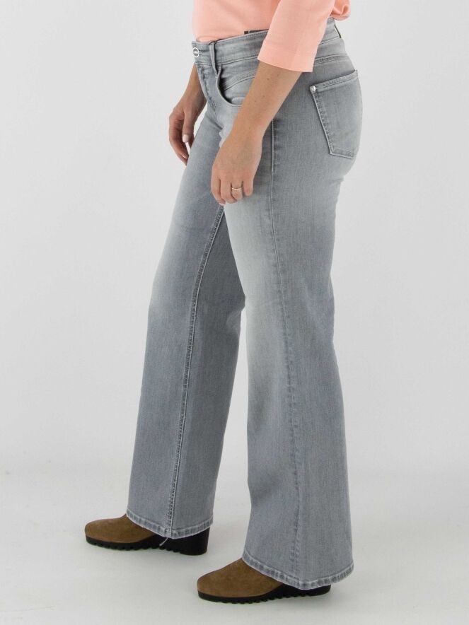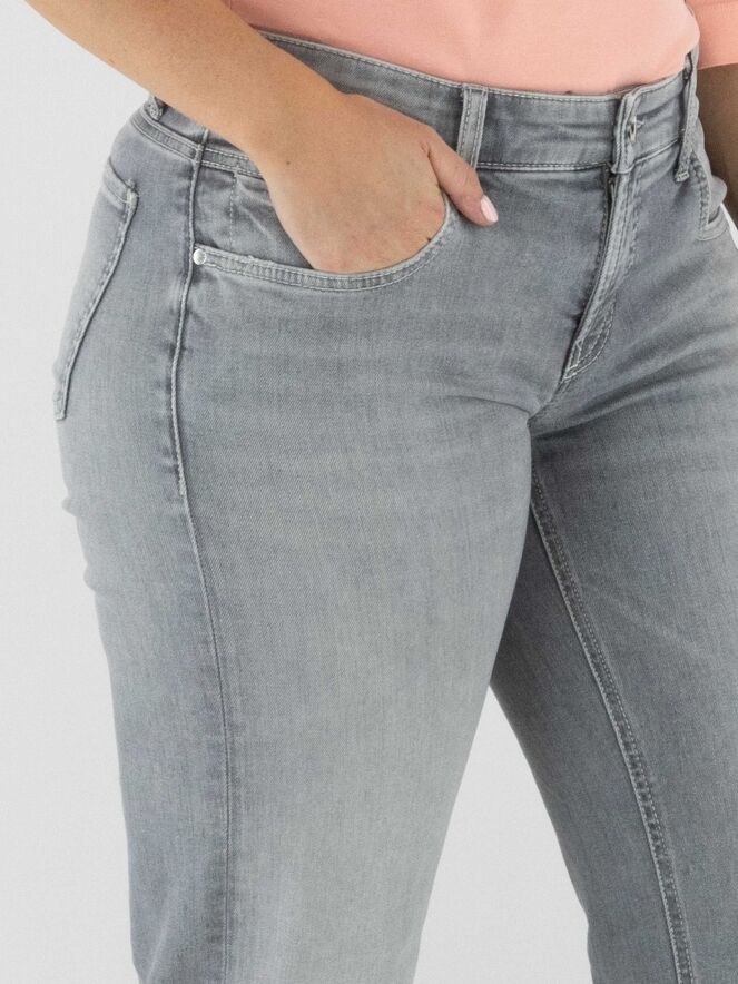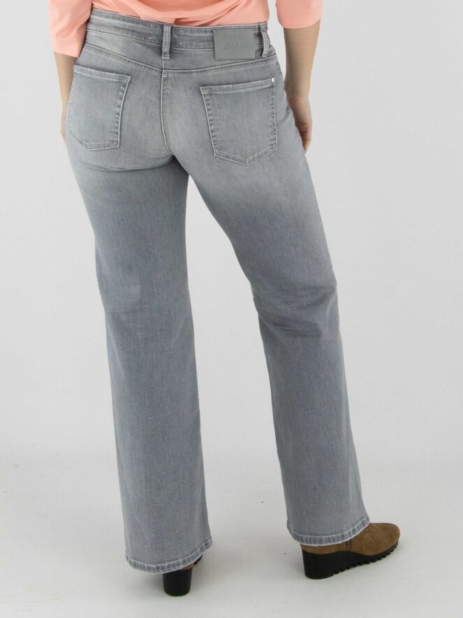 A pair of jeans by Cambio in a light grey colour. The jeans have a straight fit and a classic 5-pocket design. They can be washed at 30 degrees.
