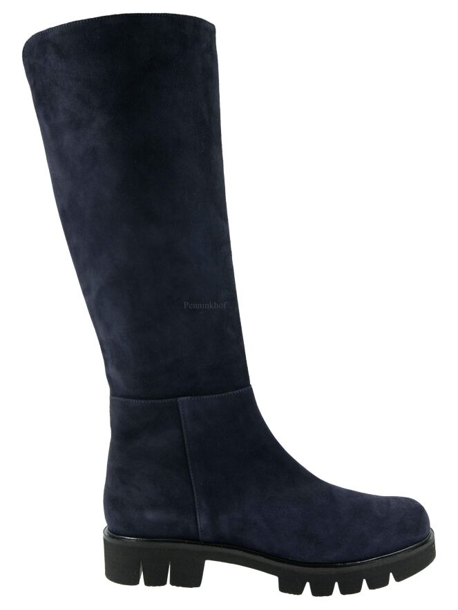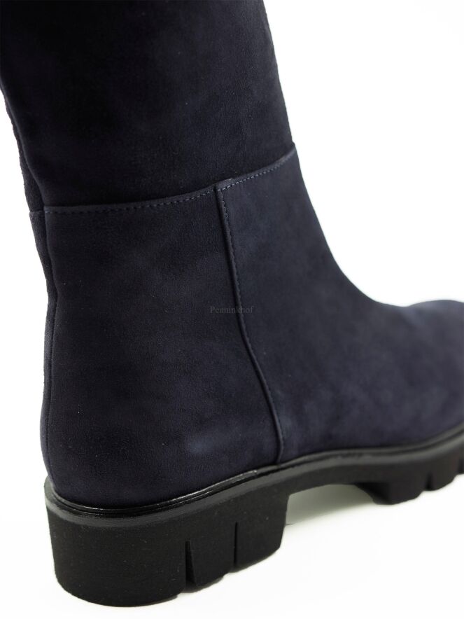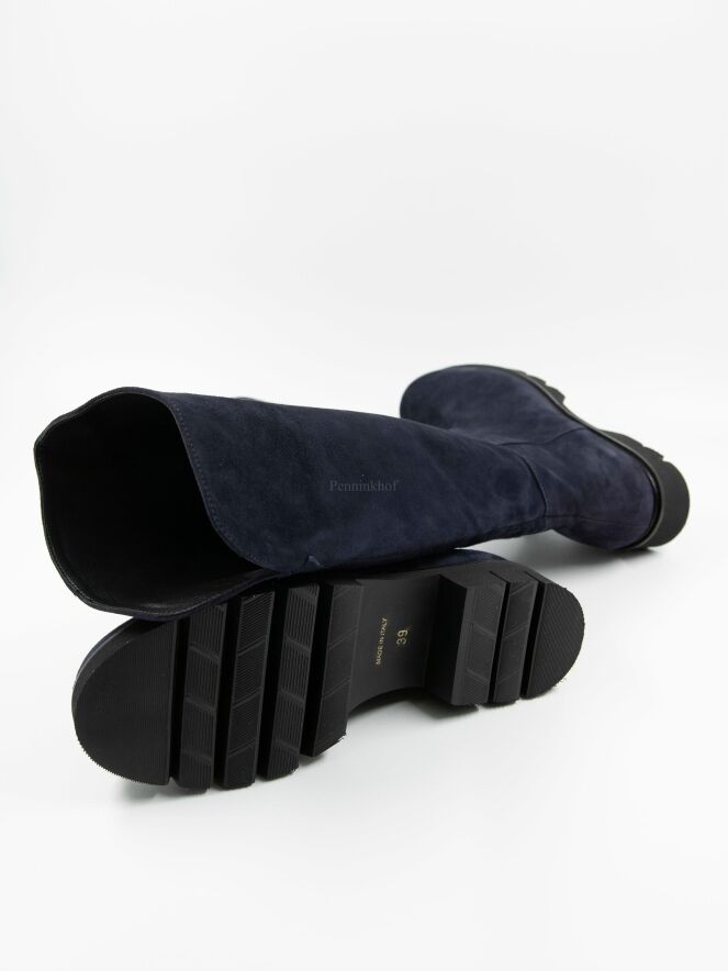 A high boot from Cervone in navy blue. The boot has a round toe and on the inside is a zip fastening up to mid-calf. The boot is lined on the inside with leather.