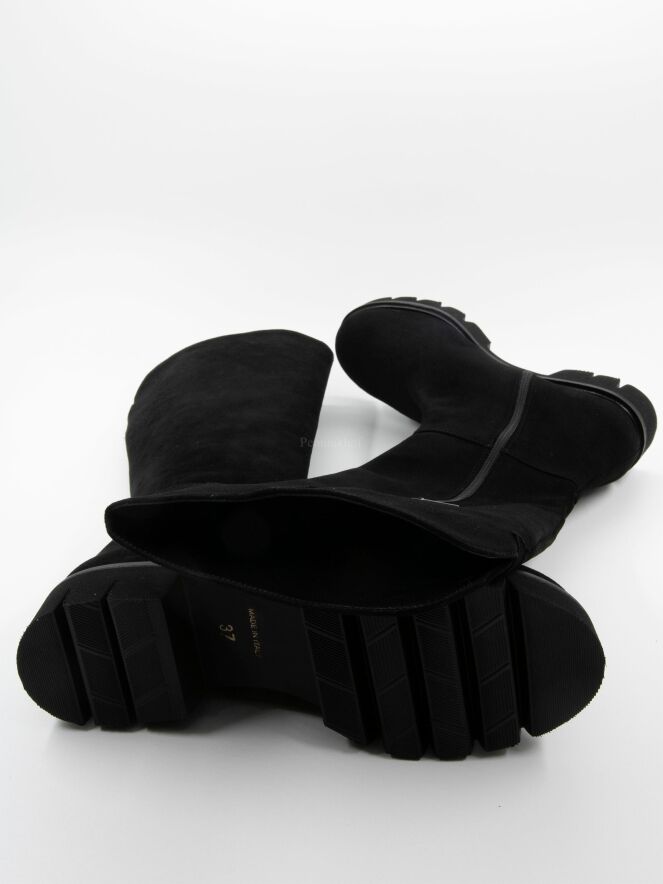 A high boot from Cervone in the colour black. The boot has a round toe and on the inside is a zip fastening up to mid-calf. The boot is lined on the inside with leather.