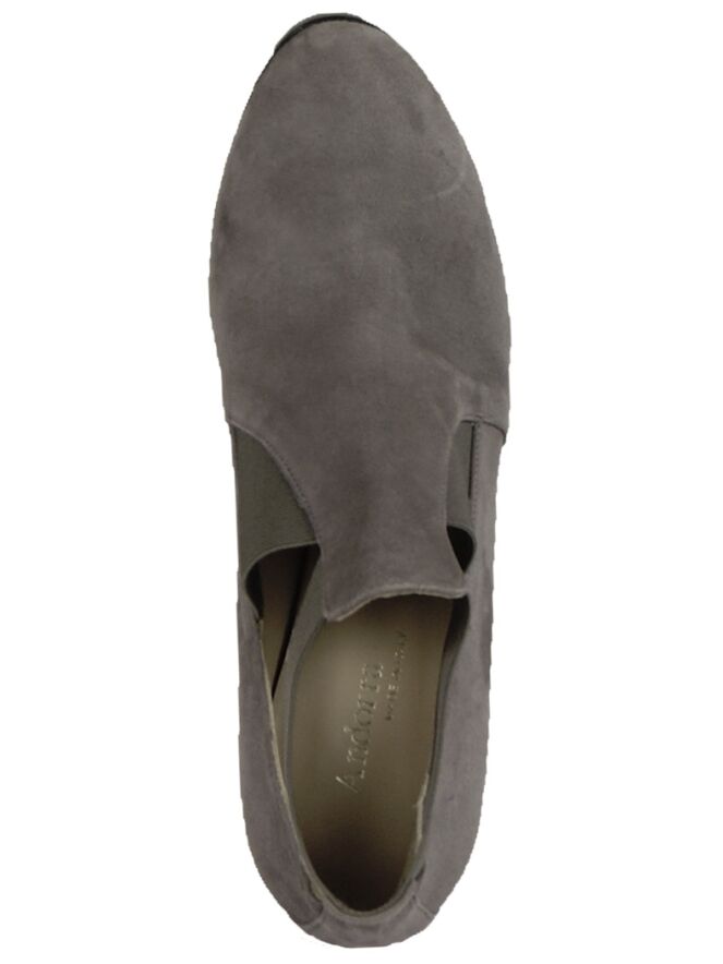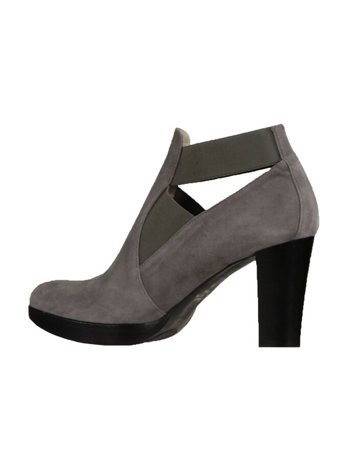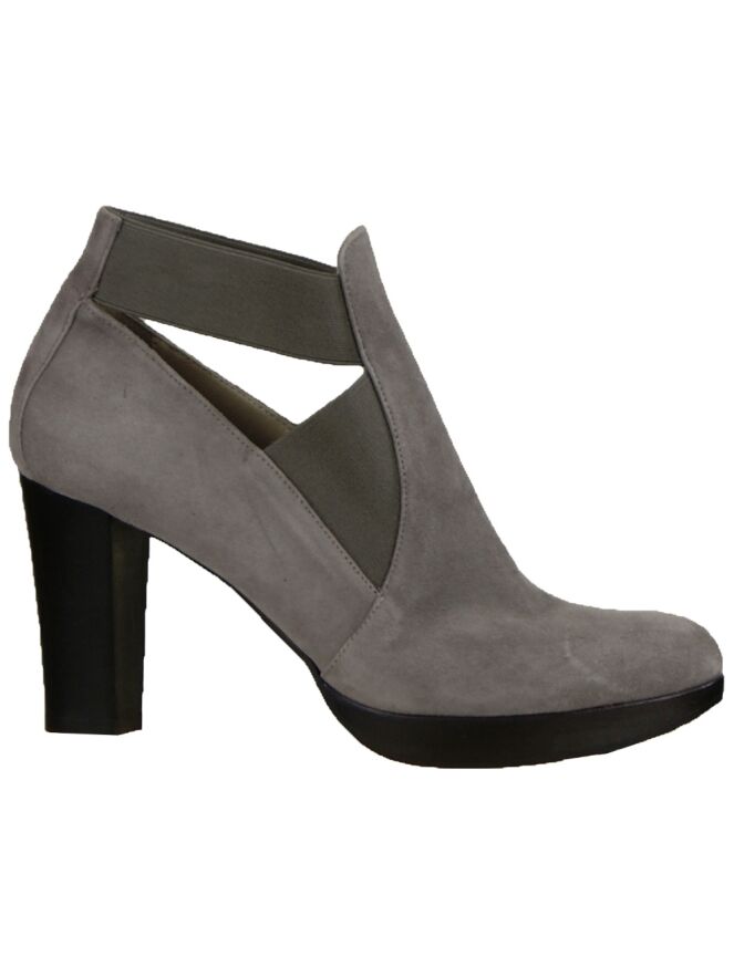 A pump of the brand Cervone in the color taupe. Along the forefoot is an elastic piece deployed on both sides and around the ankle is an elastic band which is attached to the heel. The inside of the pump is lined with leather.