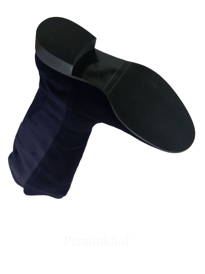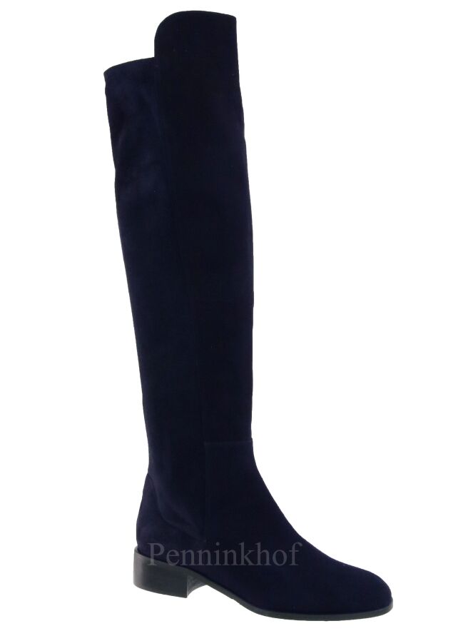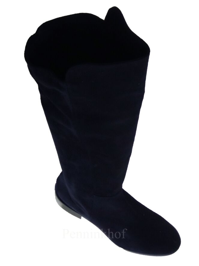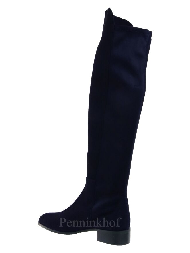 A knee boot from Cervone in navy blue. The front is in a camoscio suede and the back of the shaft is in an elastic suede. The inside is lined with leather.