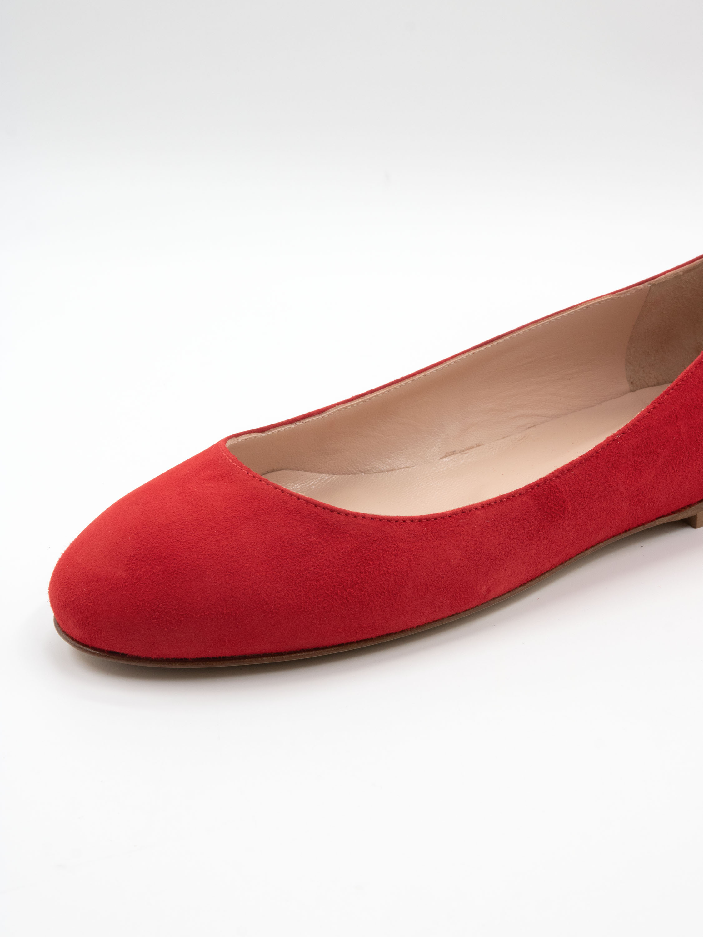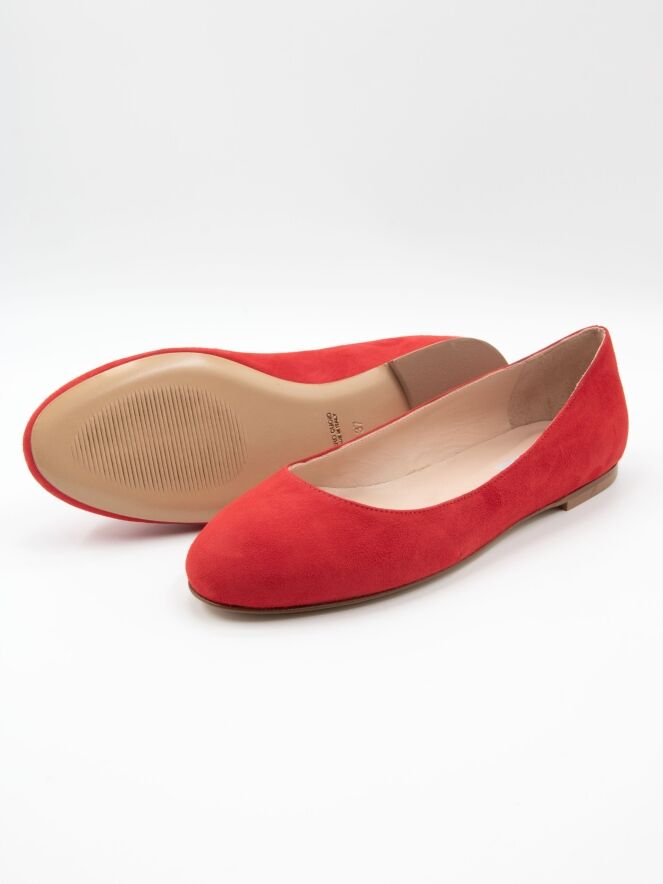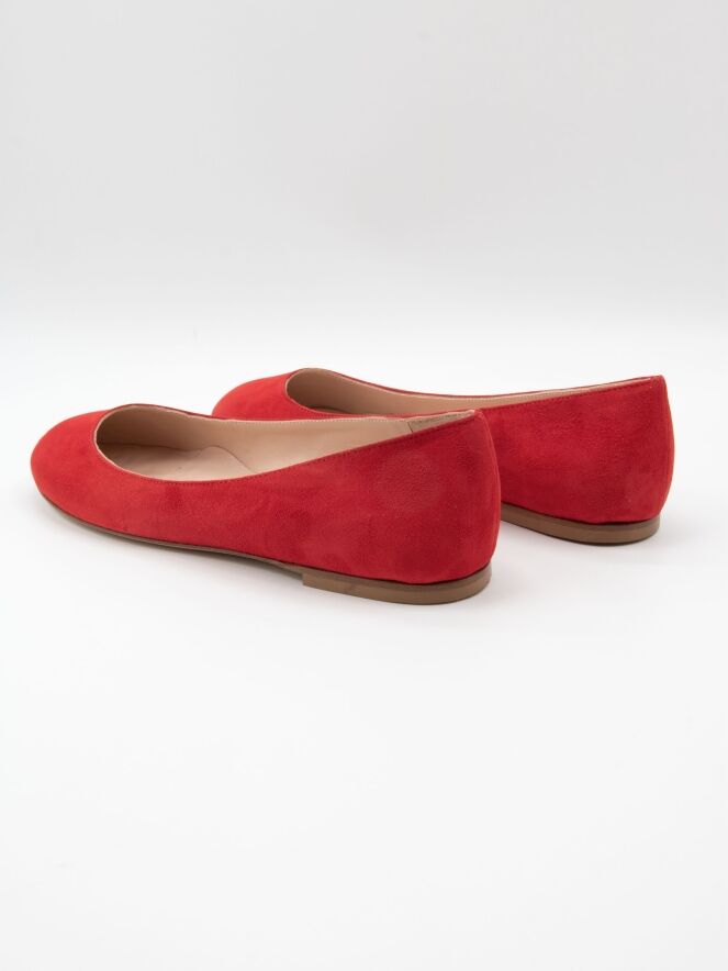 Ballerina by Cervone in a vibrant red shade. The toe is elegantly rounded, and the interior is lined with leather for enhanced comfort. The subtle 1 cm heel provides added stability and pleasant support while walking.