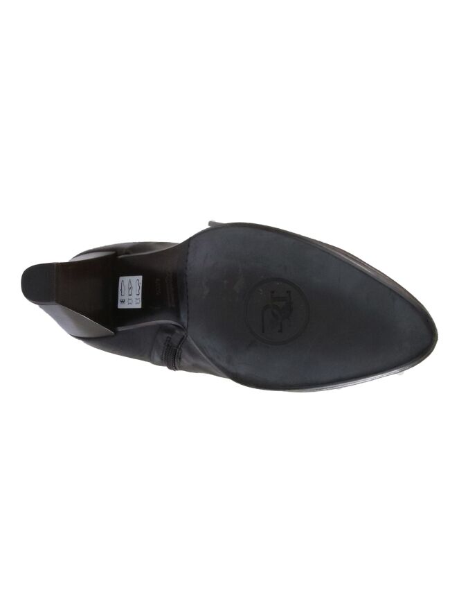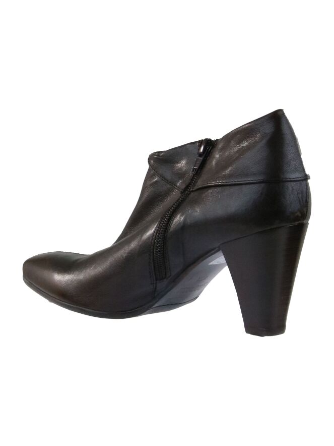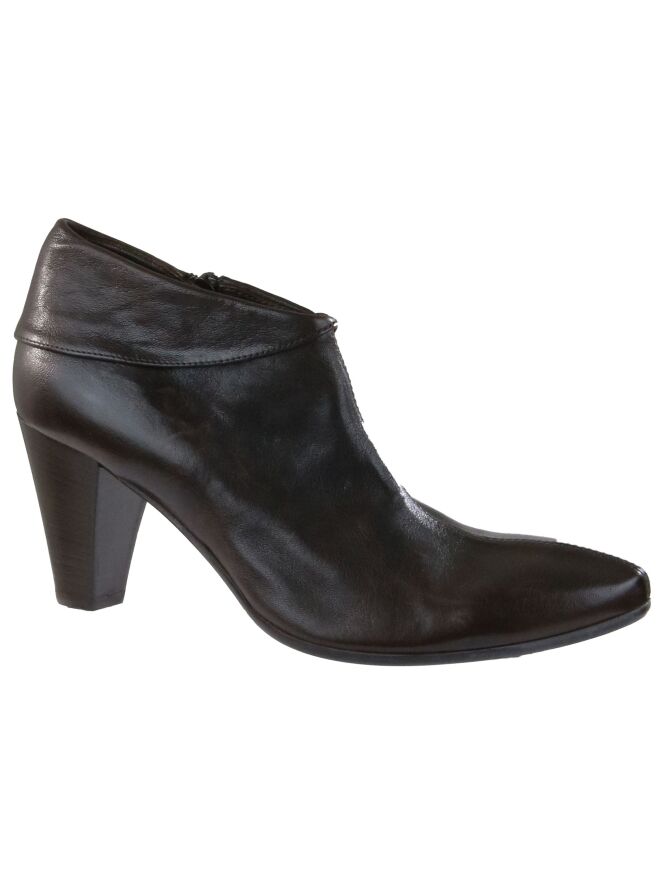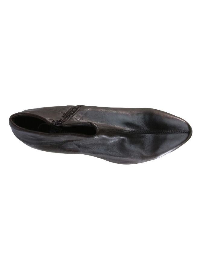 A short boot from Donna Carolina in a mocha brown color. Along the shaft is a wrap to the heel. The boot has a zipper on the inside. The inside is lined with leather.