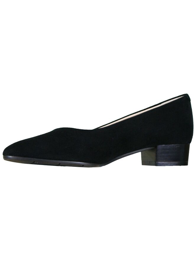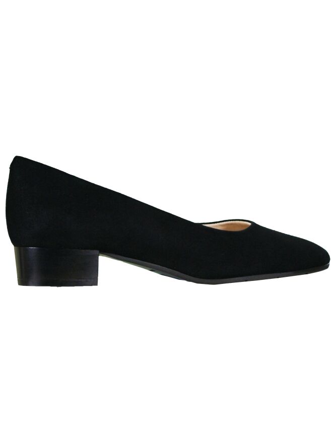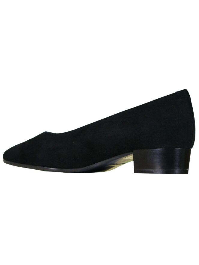A pump of the brand Evaluna in the color black. The pump has a round nose and is lined on the inside with leather. The 3 cm high heel is carried out in a neutral black color.
