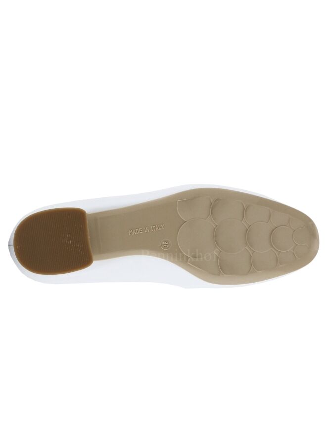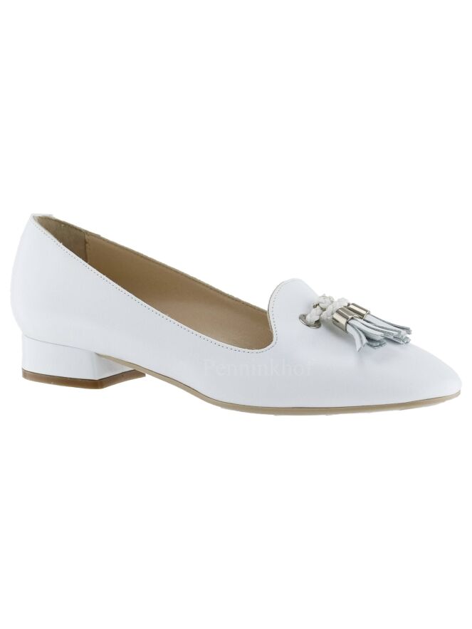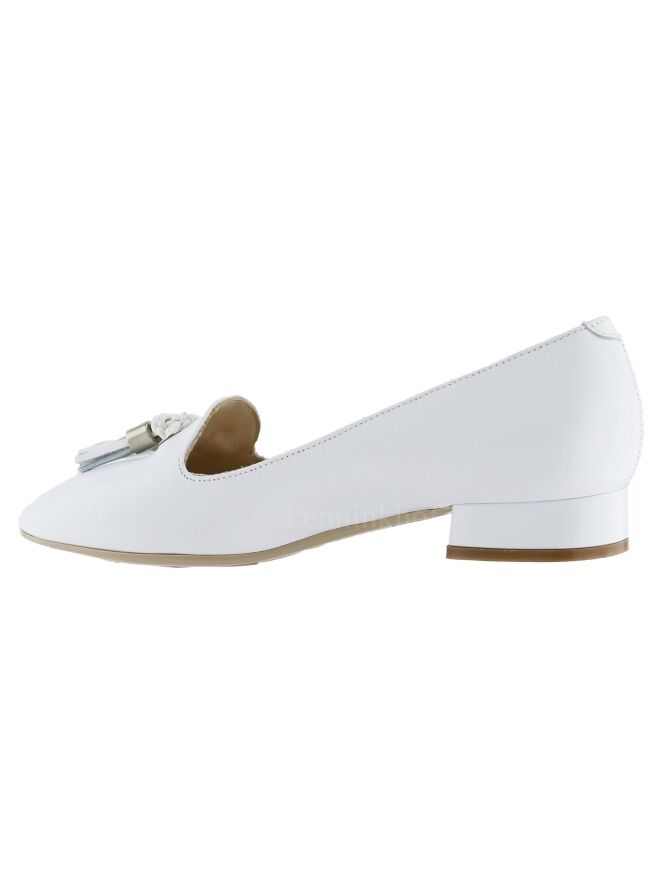A loafer of the brand Evaluna in the color white. On the forefoot is a double tassel confirmed. The inside of the loafer is with leather.