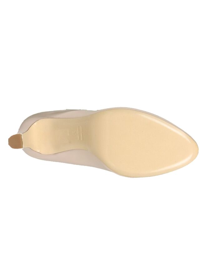 A pump of Evaluna in the color nude. The pump is in soft nappa leather and has a slender round nose. The elegant heel is covered in the same leather as the pump. The inside is lined with leather.