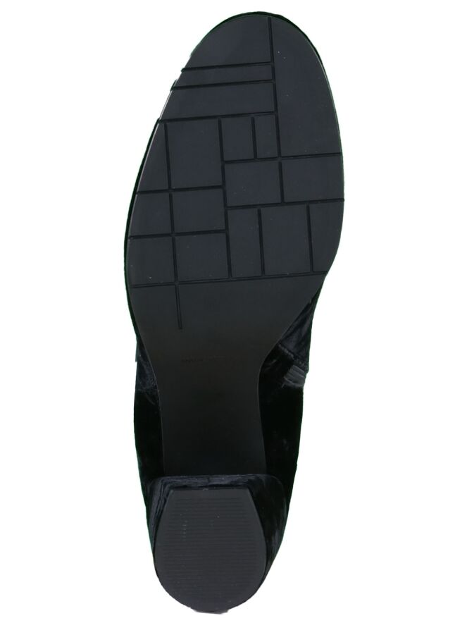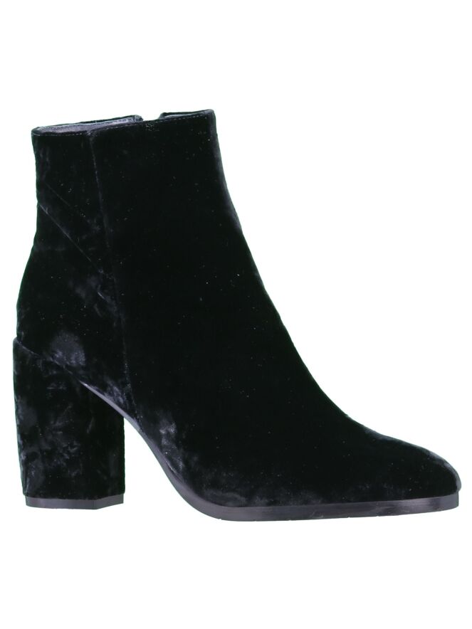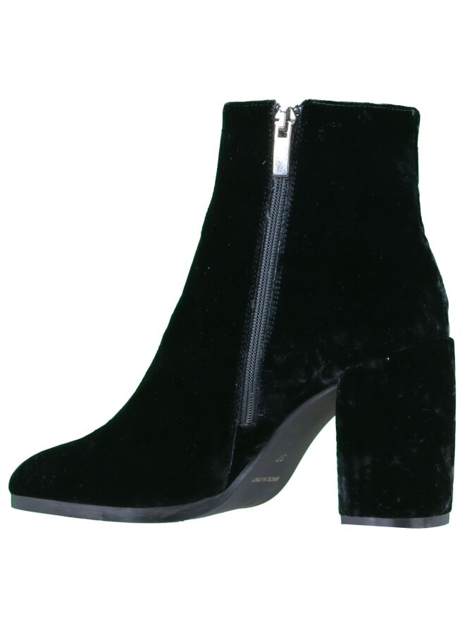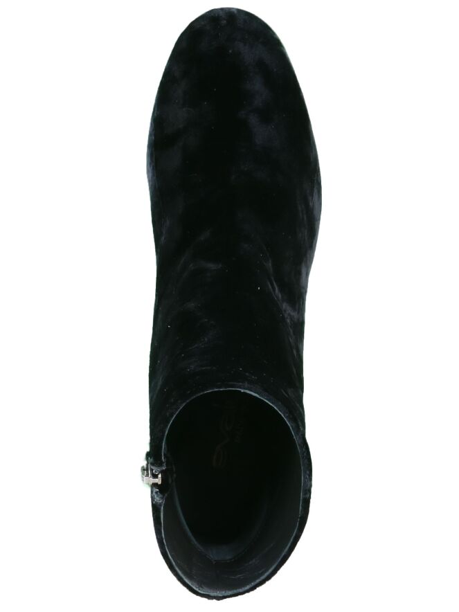 Ankle boots of the Evaluna brand in the color black. The boot has a round toe and has an elegant block shack that is lined in the same velvet as the boot. The shaft height is 10 cm from the heel and the shaft circumference is 28 cm. The inside of the boot is lined with leather.