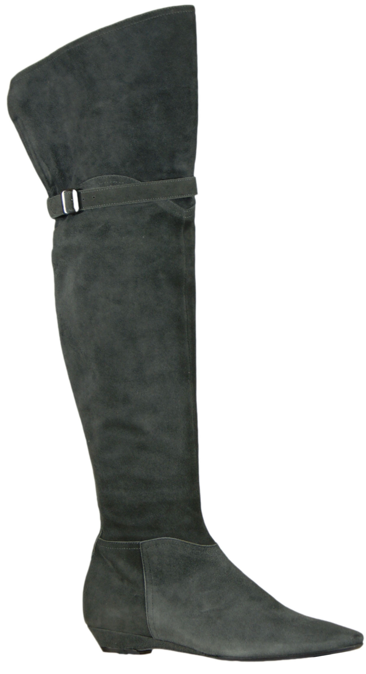 A tubeboot by the brand Franco Troise in a dark grey color with a low heel. The boot has a narrow width and has a shaft height of 41 cm with an extra lenght of 10 cm which can be folded. The circumference of the shaft 35 cm. is the sole . From the sole till mid shaft is on the inside of the boot a zipper.