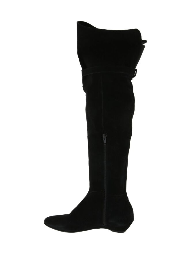 A fairing boot of the brand franco Troise in the color black. On the inside a zipper over the calf height. At the top of the shaft is a decorative strap with a nickel colored buckle.