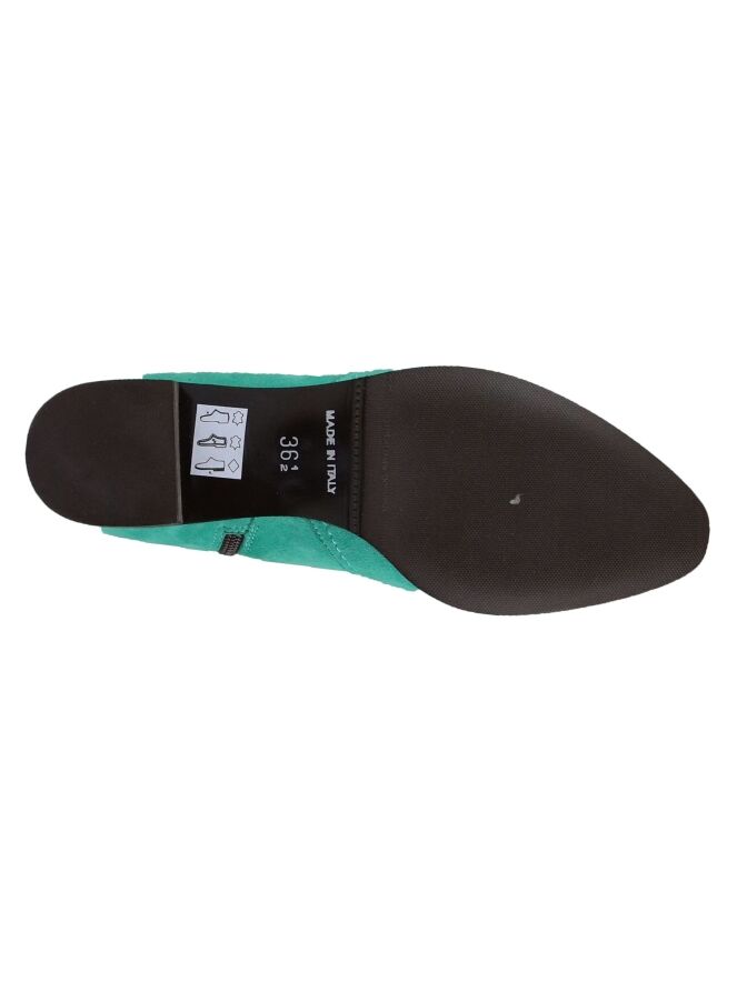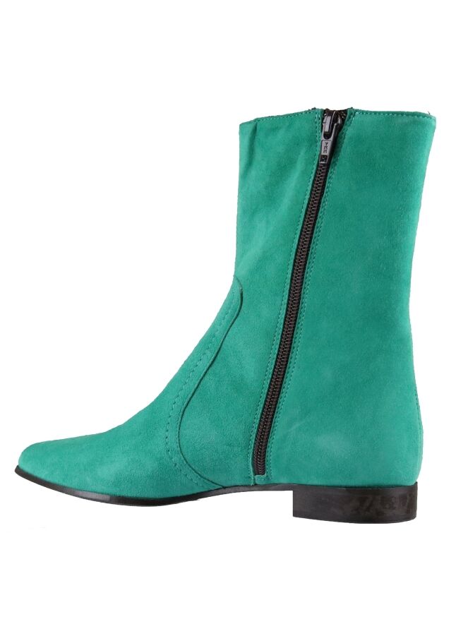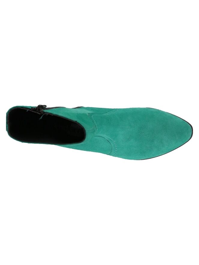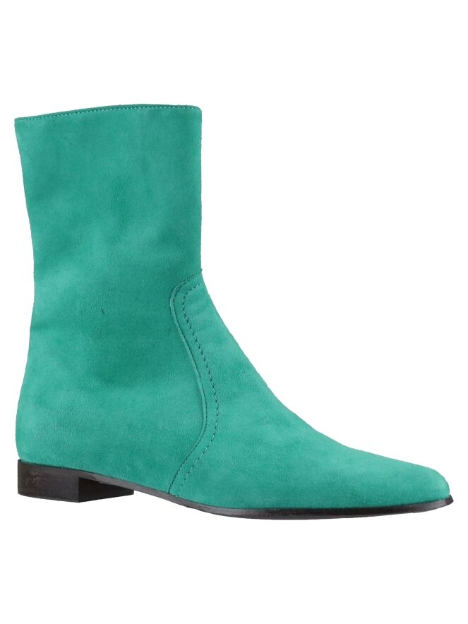 An ankle boot from Franco Troise in the color emerald green. The boot has a slightly pointed nose. On the inside is a zipper and the inside is lined with leather.