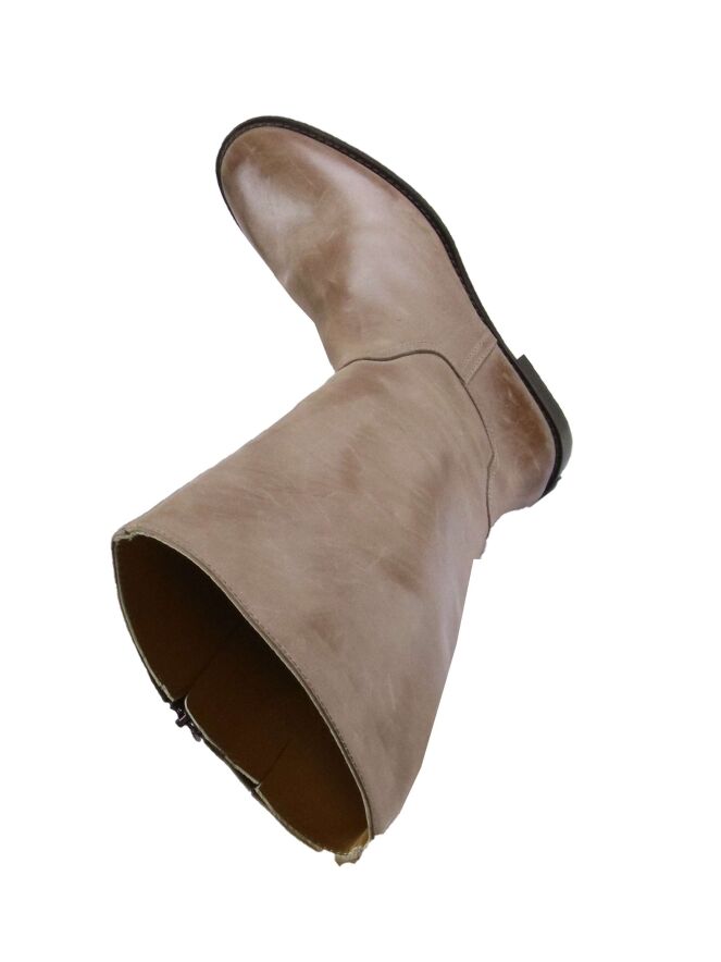 A boot from Franco Troise in a mixed brown color. The edge of the shaft has a slit with elastic. The boot has a round toe and the inside is lined with leather.