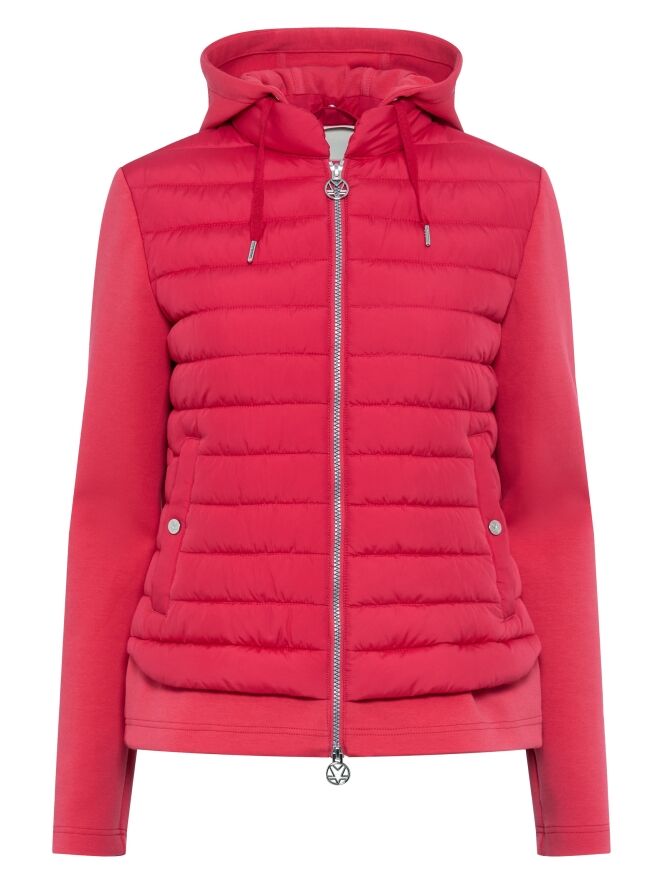 Quilted coat by Fuchs Schmitt in a fresh red shade. A drawstring is integrated into the edge of the hood, allowing it to be adjusted for added protection and a personalized fit. The sleeves are crafted in a matte solid fabric, creating a subtle contrast with the quilted body. This coat can be washed at 30 degrees.