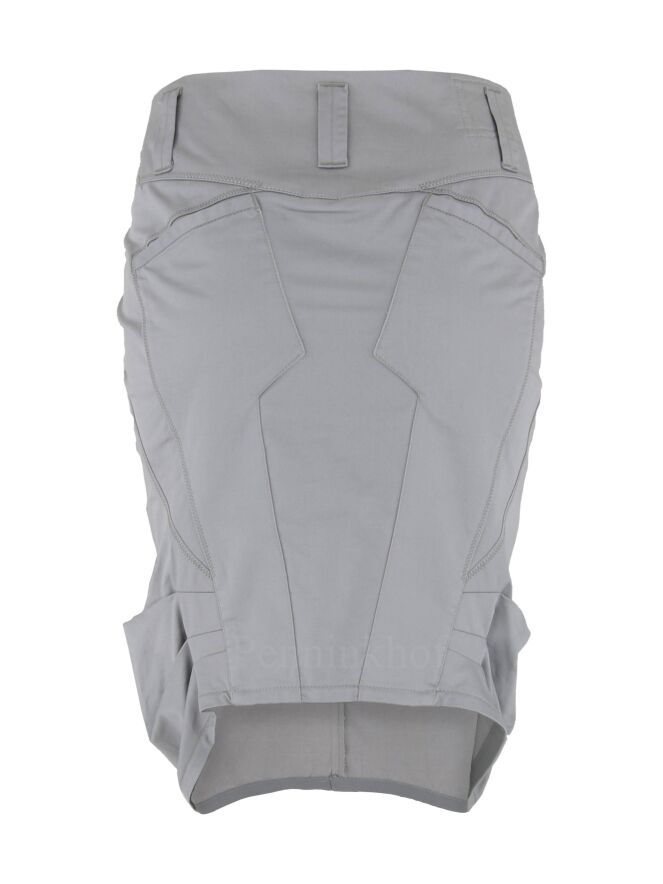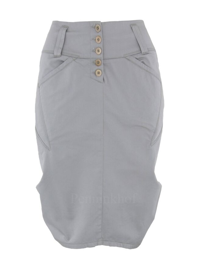 A skirt from Girbaud in the color gray. The skirt has several diagonal stitching. There are pockets below the waist. This skirt can be washed at 30 degrees.
