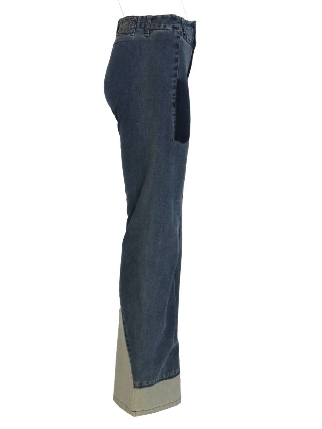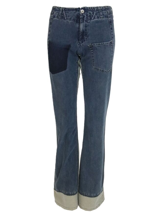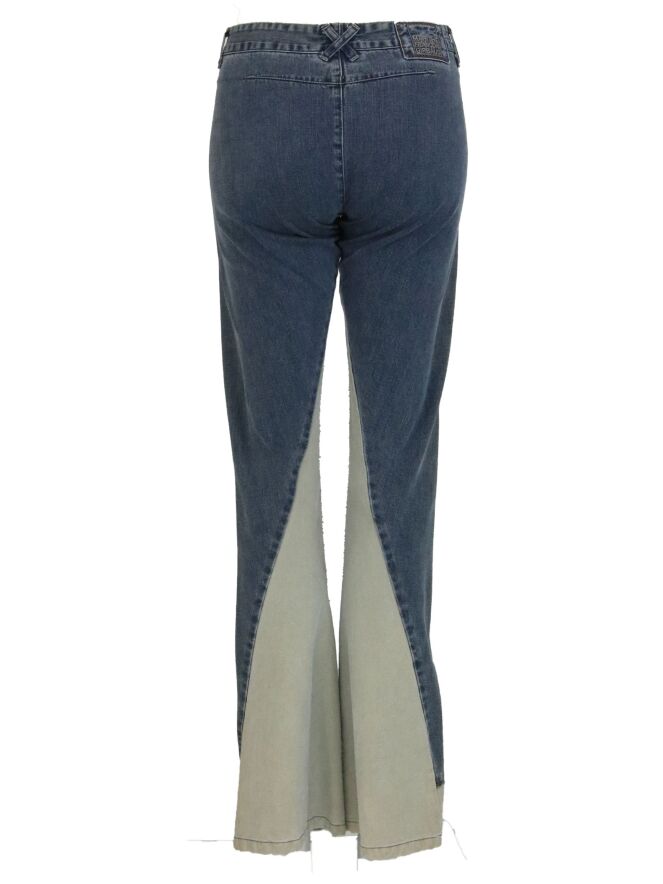 Girbaud flared jeans in a pale jenas color. At the back and at the bottom of the legs are gray parts of jeans. There is a printed pocket on the right side of the legs and a short side pocket on the left side. These jeans can be washed at 30 degrees.
