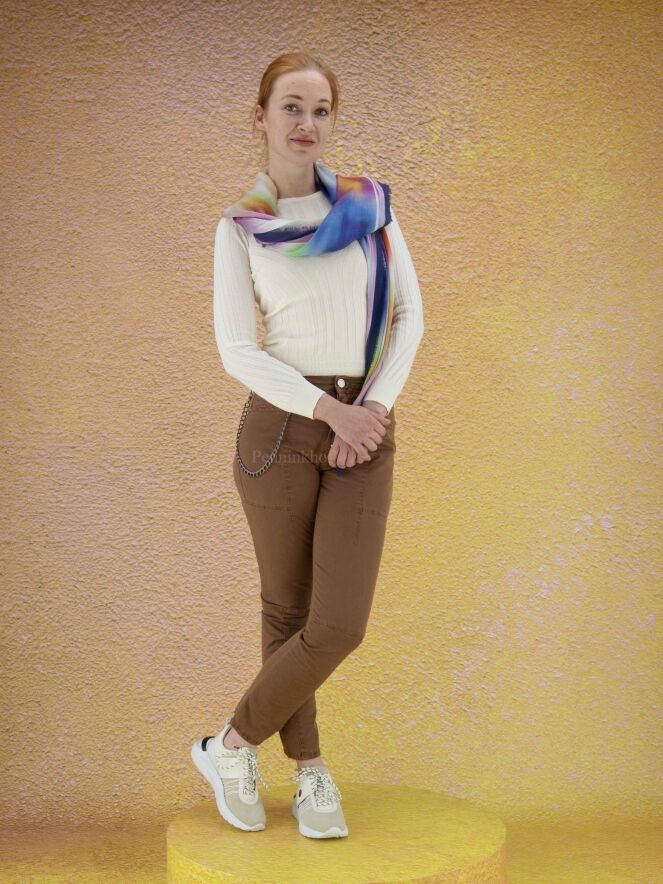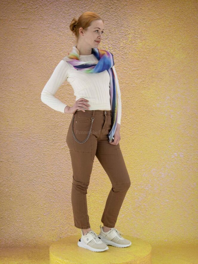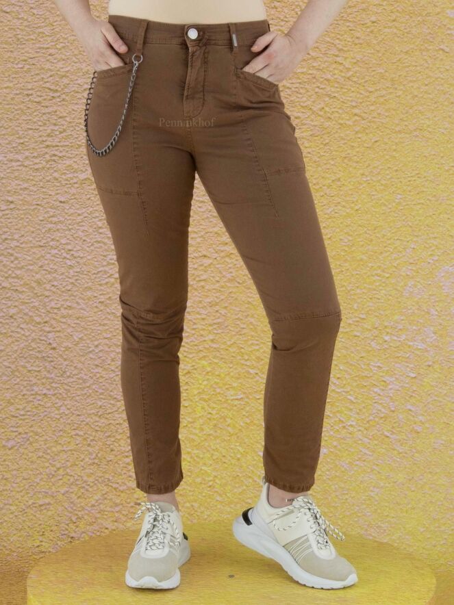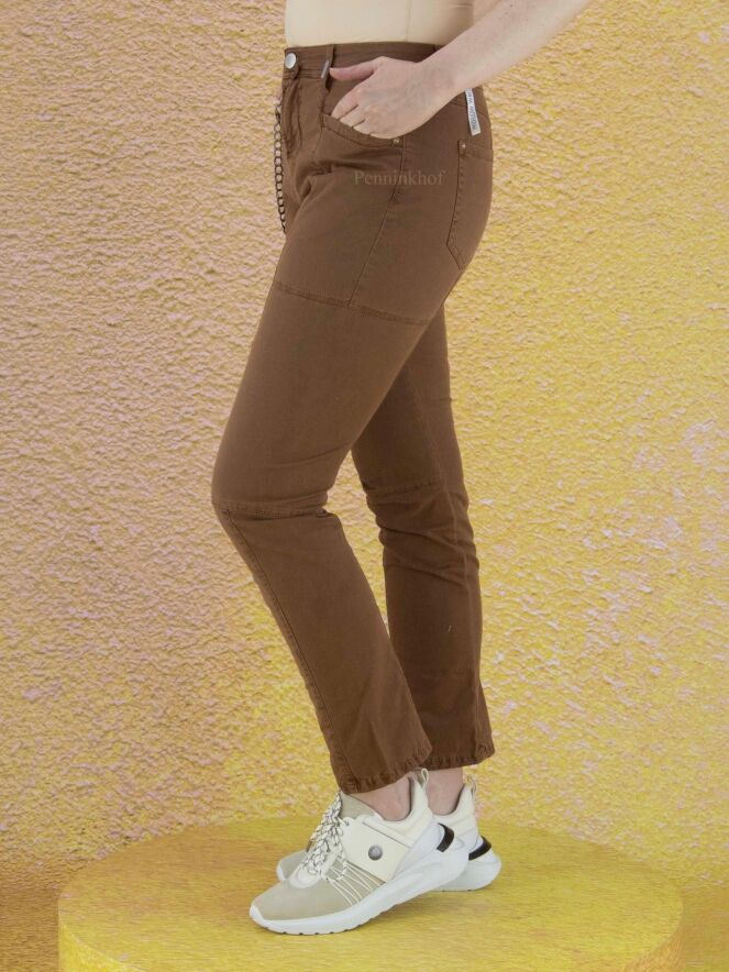 A jeans from High in a brown color. The jeans have multiple horizontal and vertical stitching. The jeans are in a 5 pocket model and can be washed at 30 degrees.