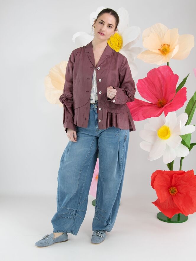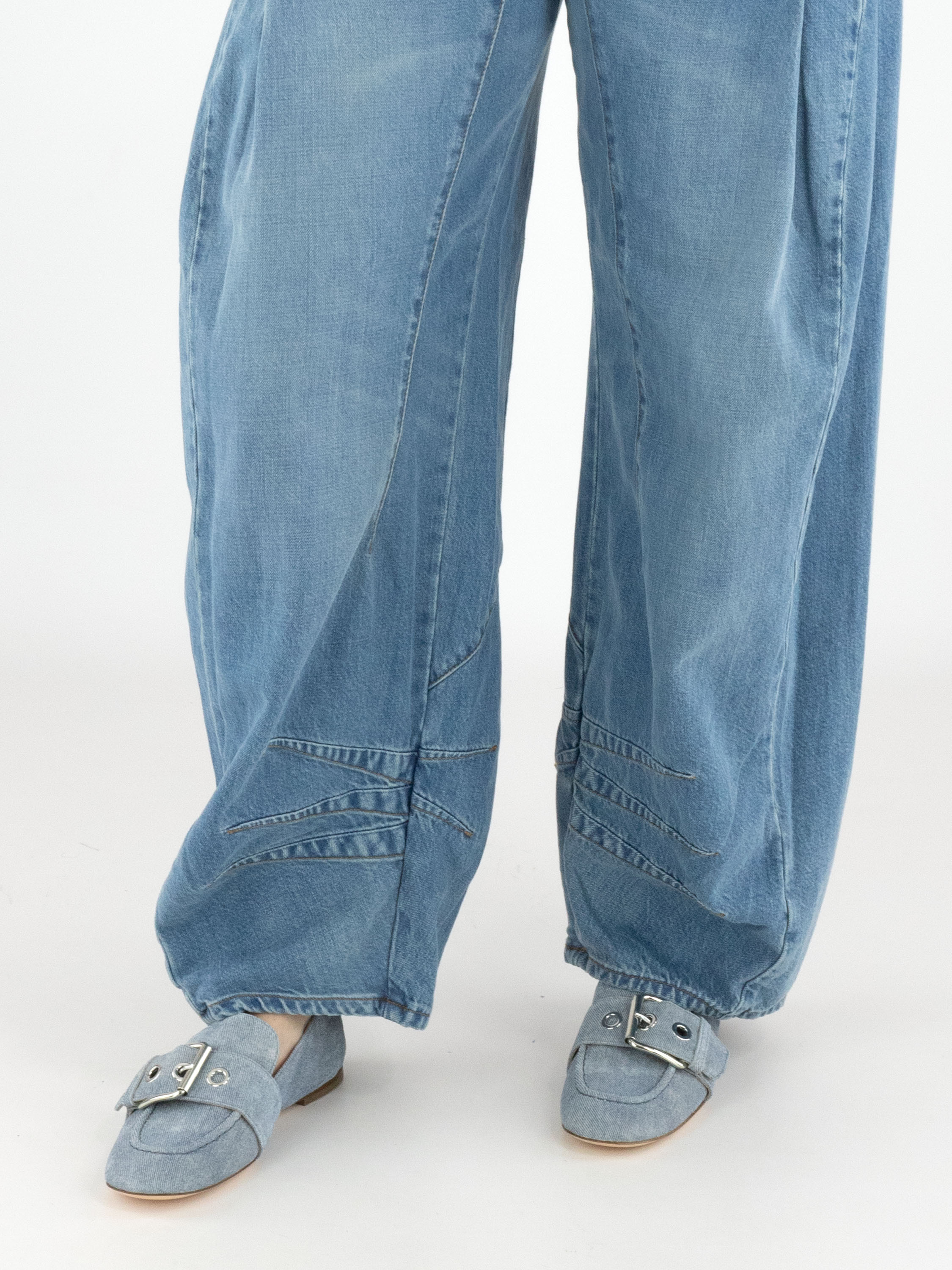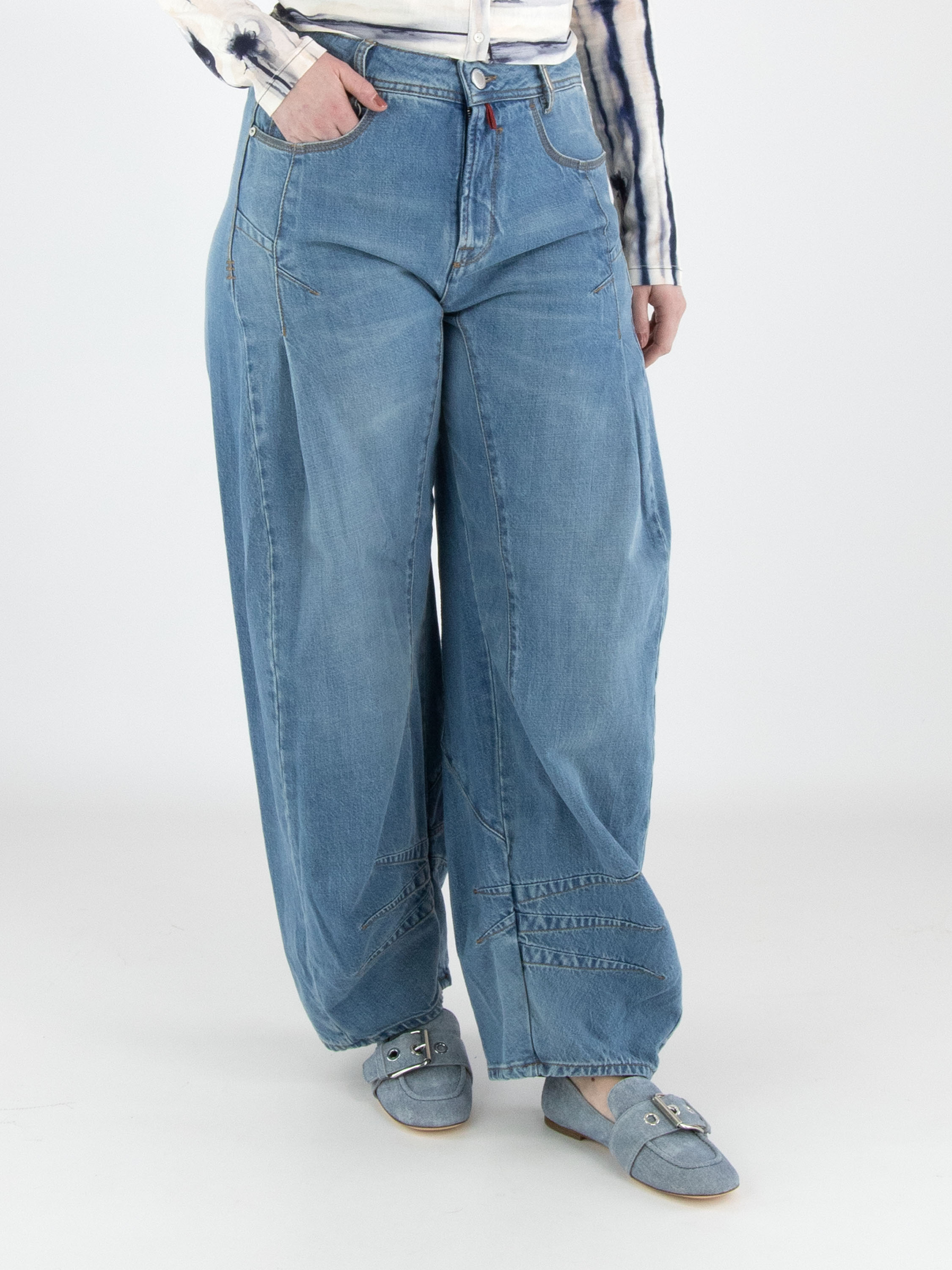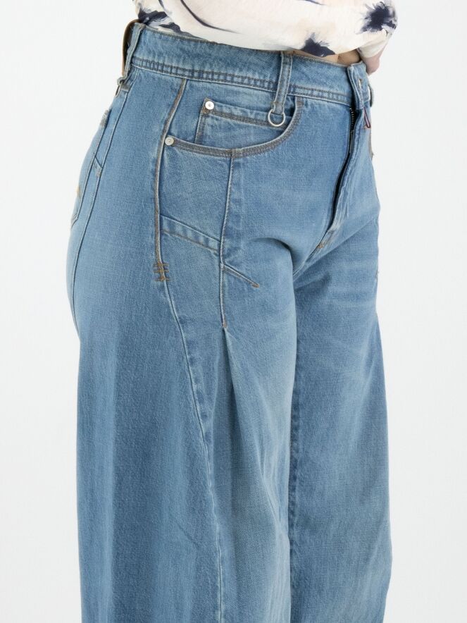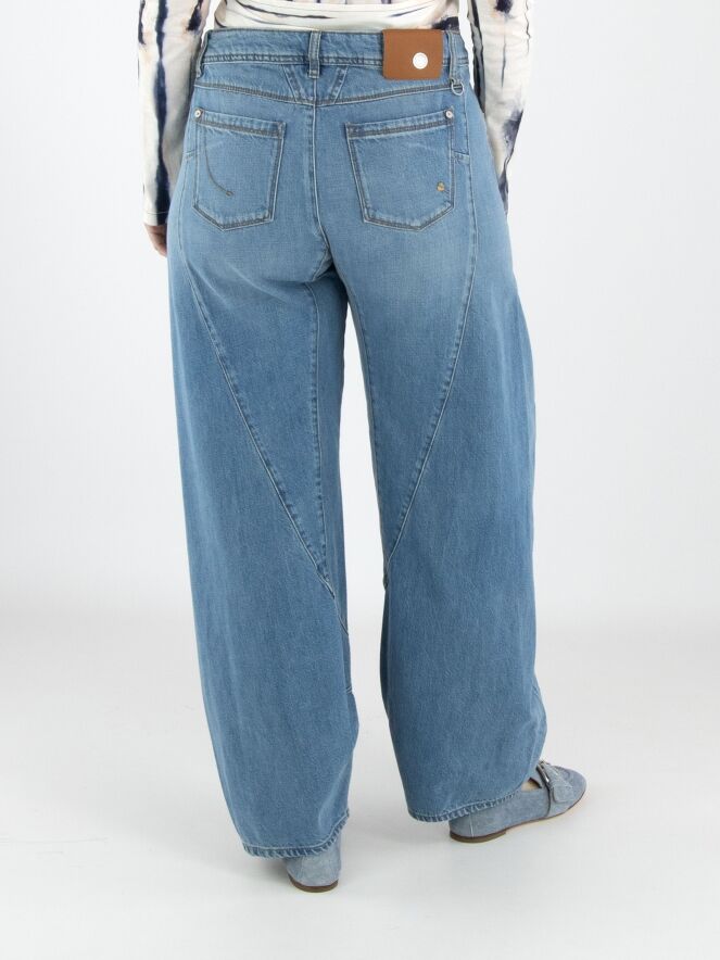 A jeans by High in a light denim shade. The jeans are designed in a classic 5-pocket style. Below the hip, pleats are created on both sides. At the lower part of the legs, three double tapering seams are applied on the inside. These jeans can be washed at 30 degrees.