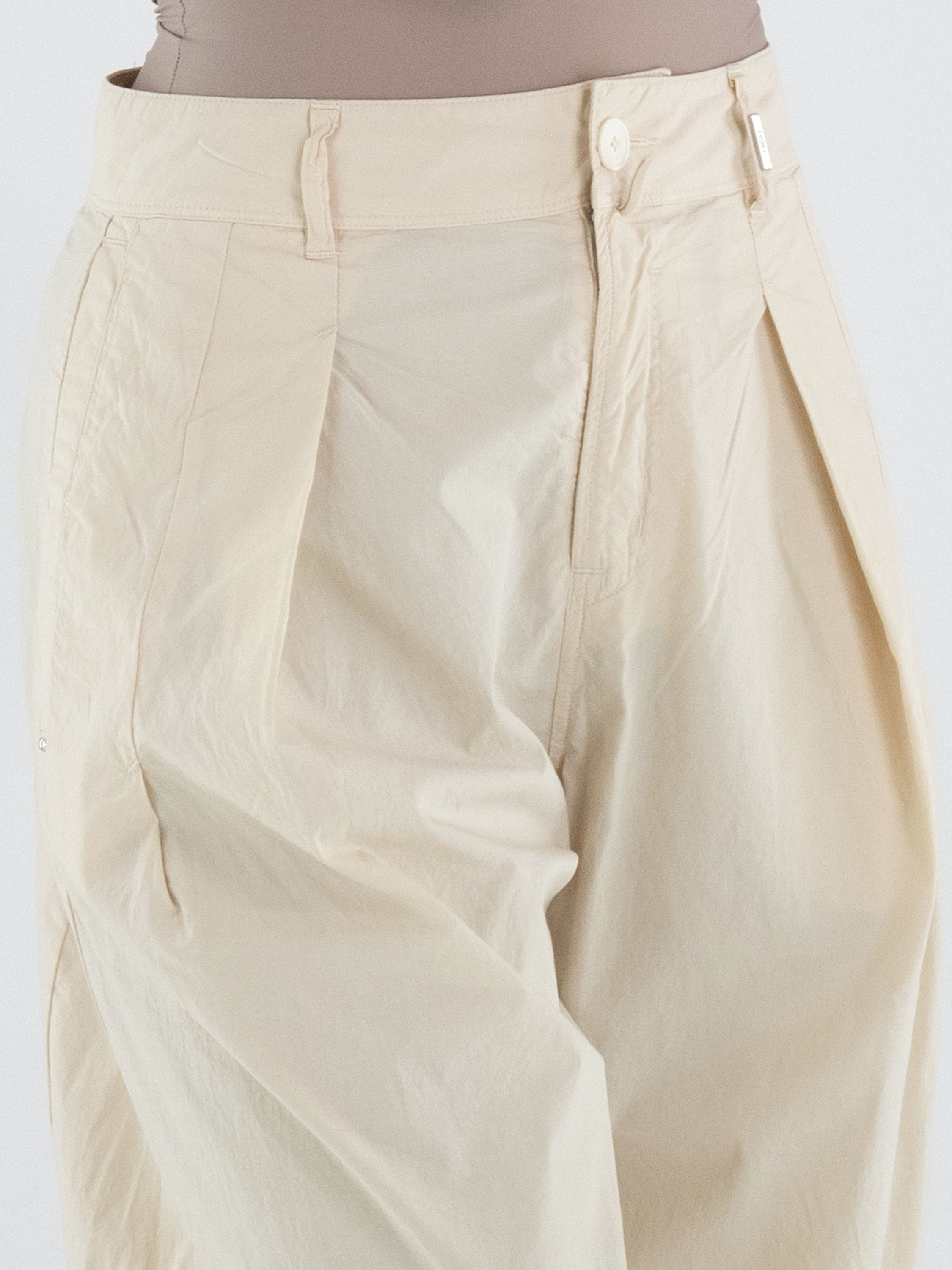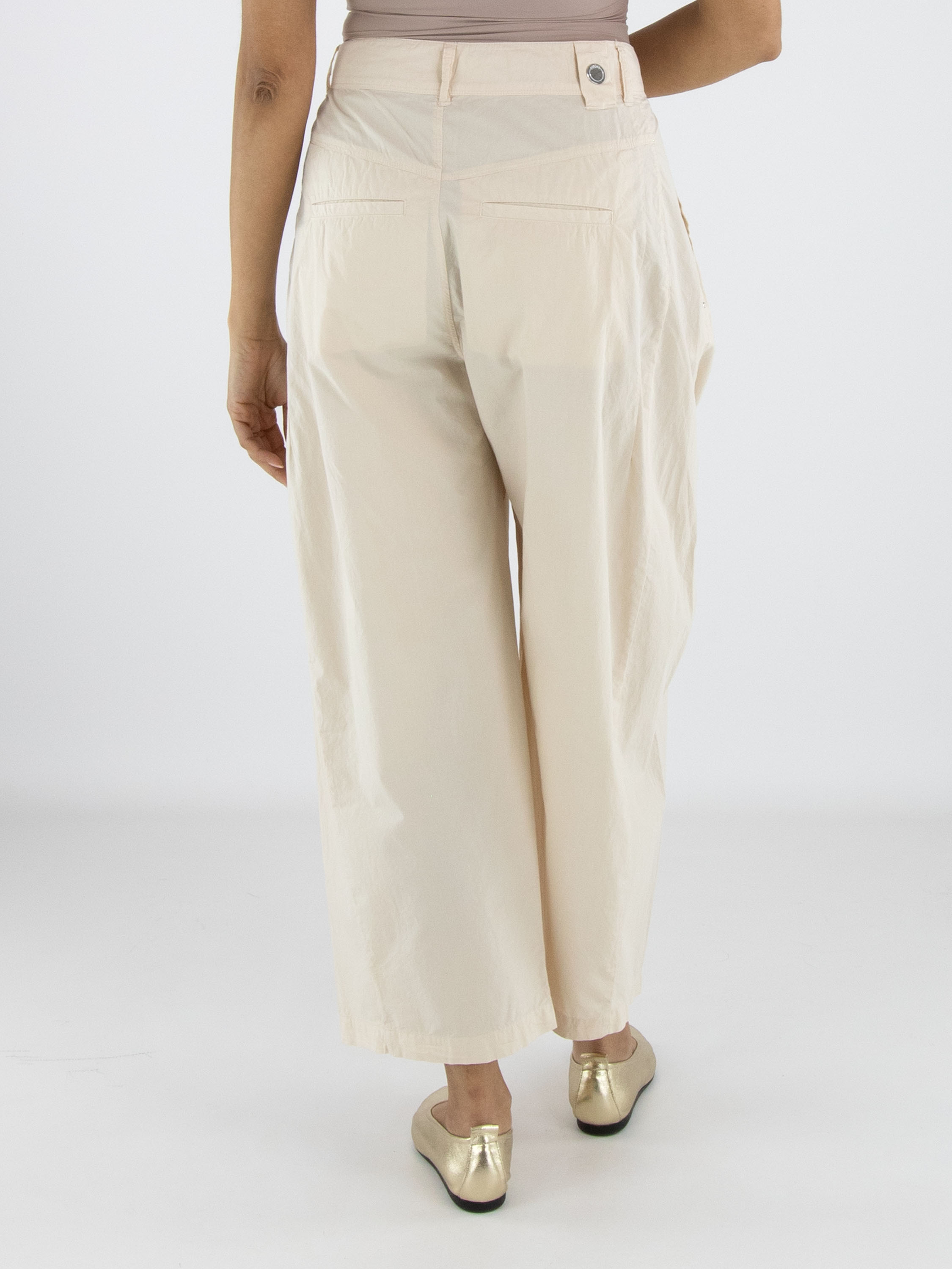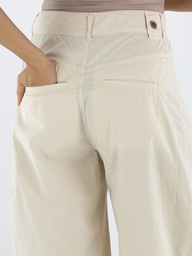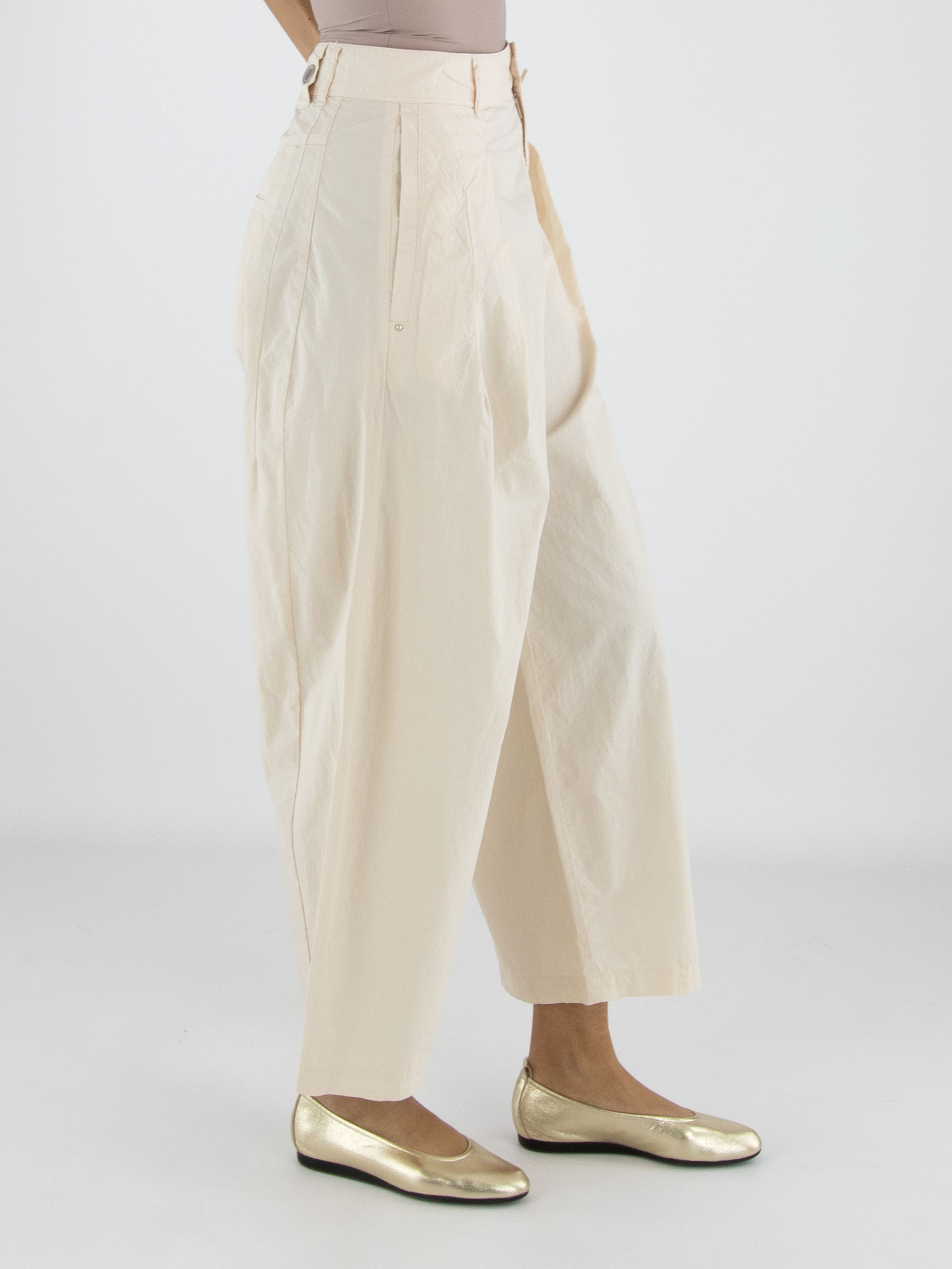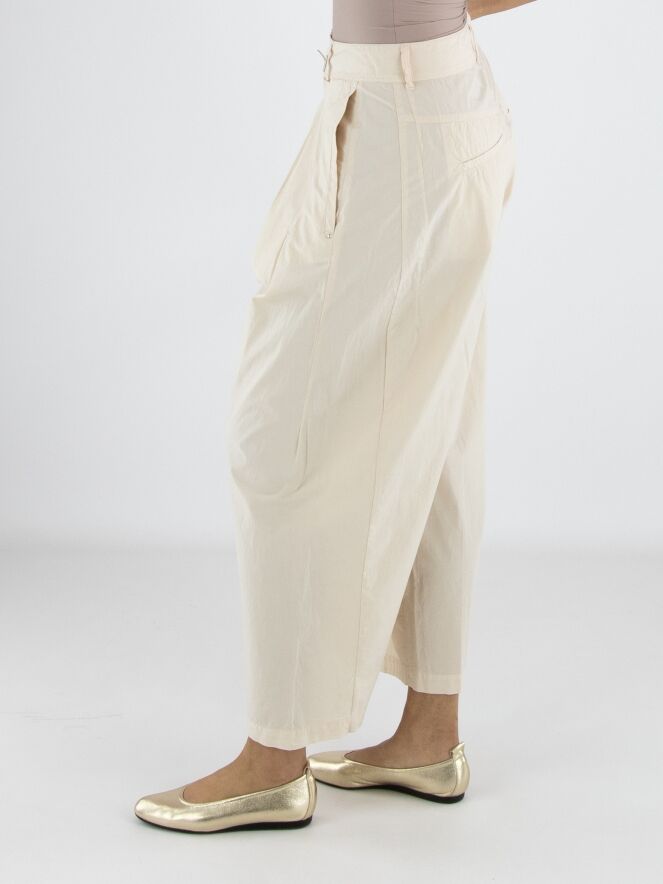 Trousers by High crafted from lightweight summer cotton in a soft vanilla shade. Pleats at the waist create an elegant yet relaxed fit. Featuring side pockets, these exclusive designer trousers can be washed at 30 degrees.