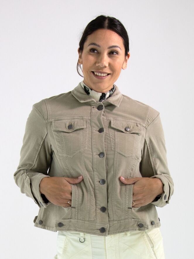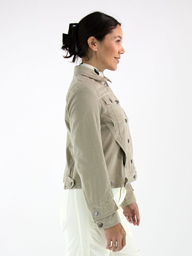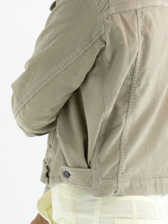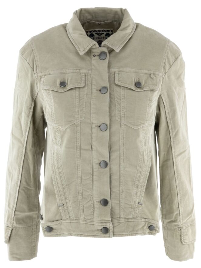 A soft velour jacket by High in a warm khaki tone that perfectly combines comfort and elegance. The blazer features a button closure and slit pockets at waist height. On the side, a button fastening allows you to adjust the fit for a closer silhouette. Thanks to the 30 °C washing instructions, the piece stays beautiful for longer and retains its shape and softness.