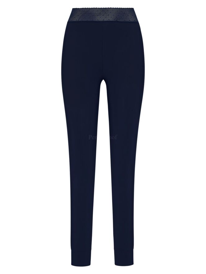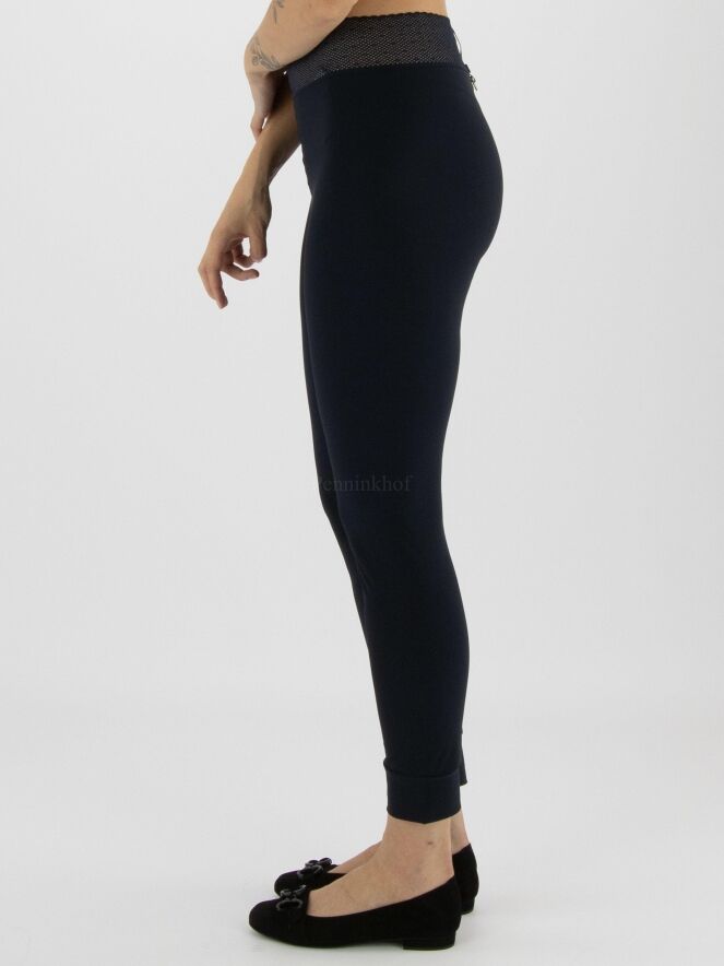 Leggings from High in the color navy blue. At the waist is a wide elastic band in a net structure. These leggings can be washed at 30 degrees.