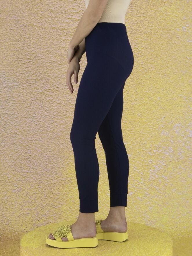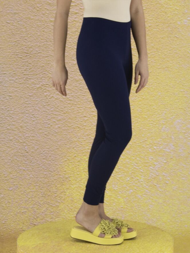 Leggings from High in the color midnight blue. At the waist is an elastic band. There is a wide board at the bottom of the legs. These leggings can be washed at 30 degrees.