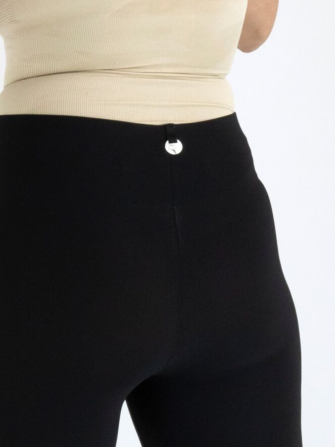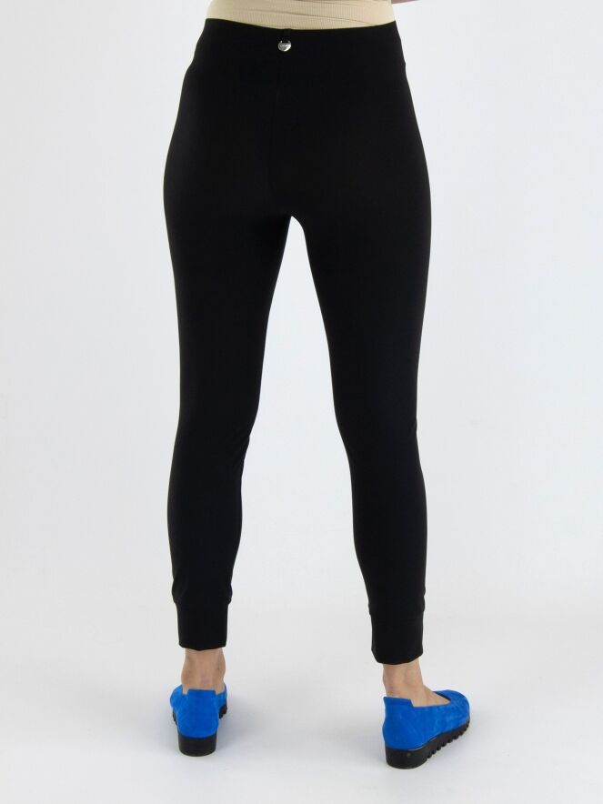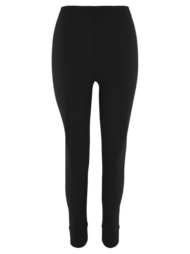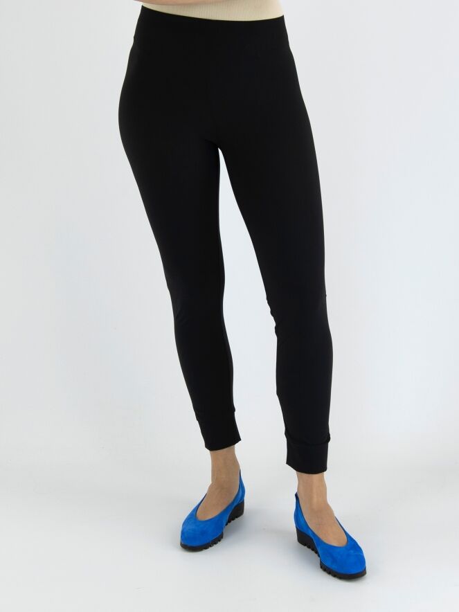 A leggings by High in black. There is an elastic band at the waist. At the bottom, there is a wide trim with a seam. These leggings can be washed at 30 degrees.