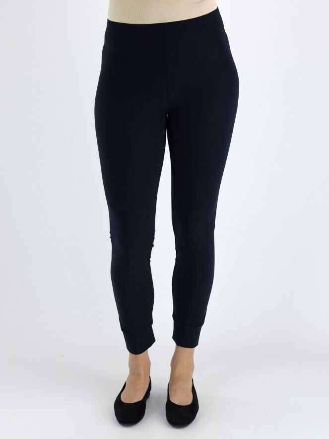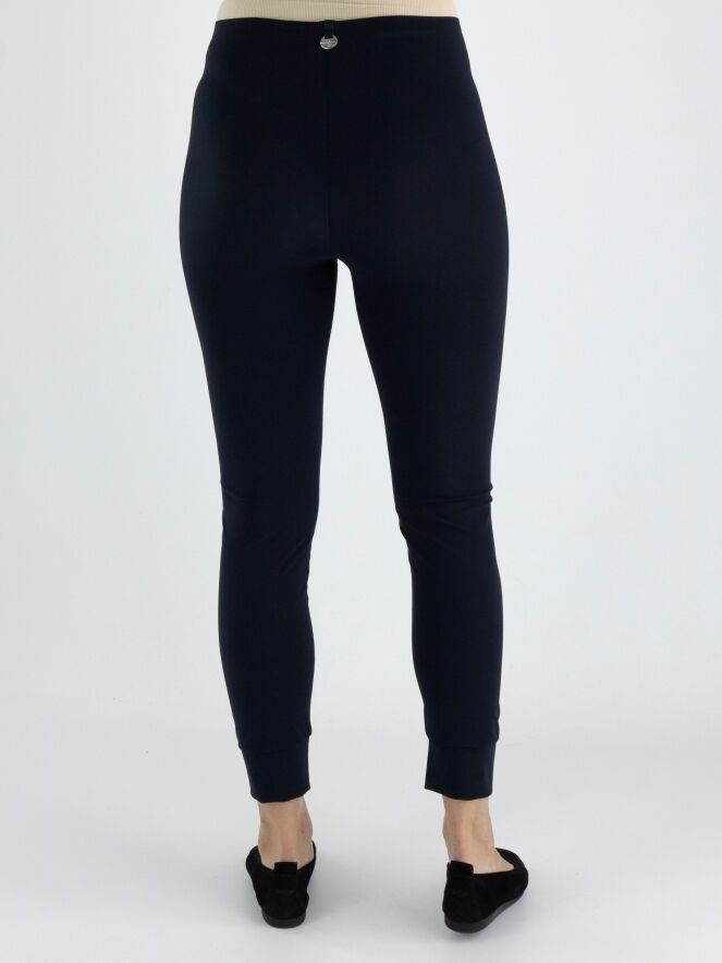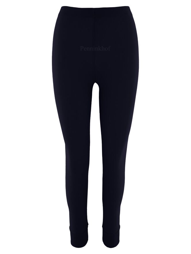 A leggings by High in navy blue. There is an elastic band at the waist. At the bottom, there is a wide trim with a seam. These leggings can be washed at 30 degrees.