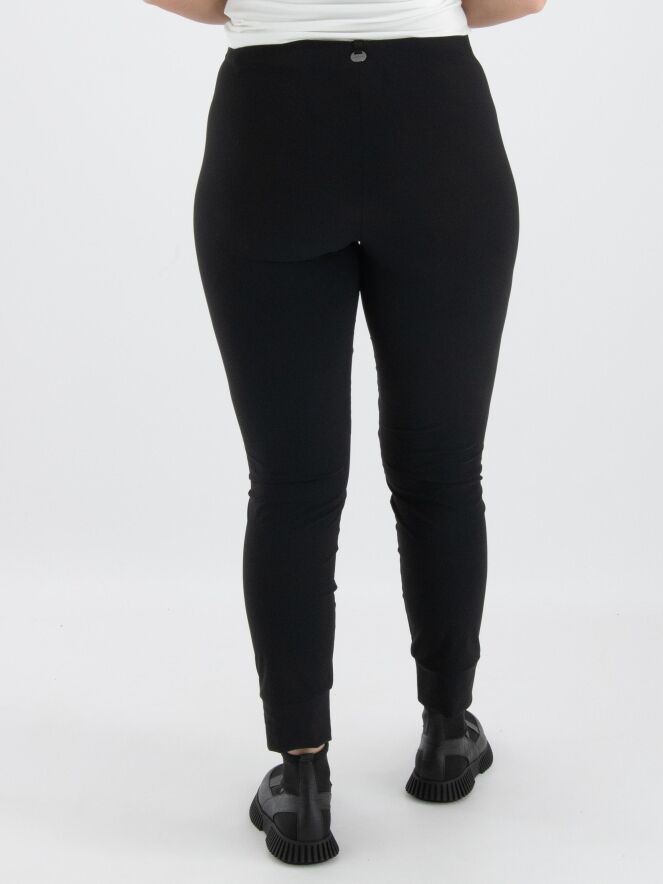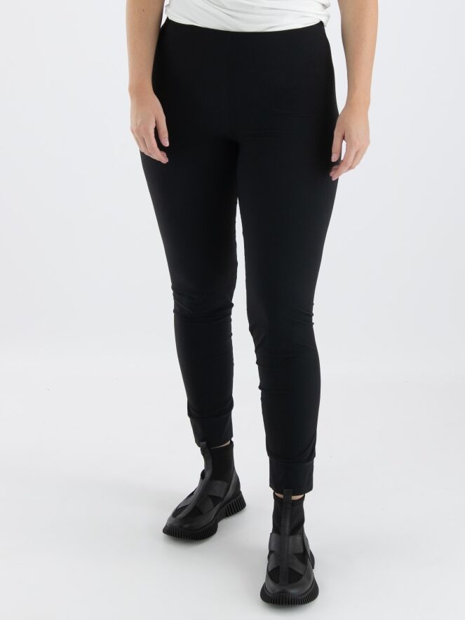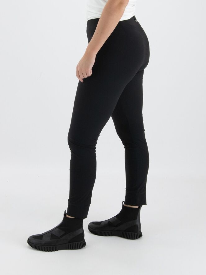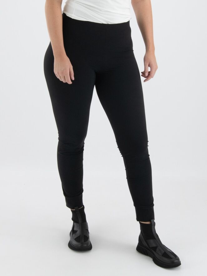 A legging from High in black. It features an elastic waistband. At the bottom, there is a wide trim with a seam. These leggings can be washed at 30 degrees.