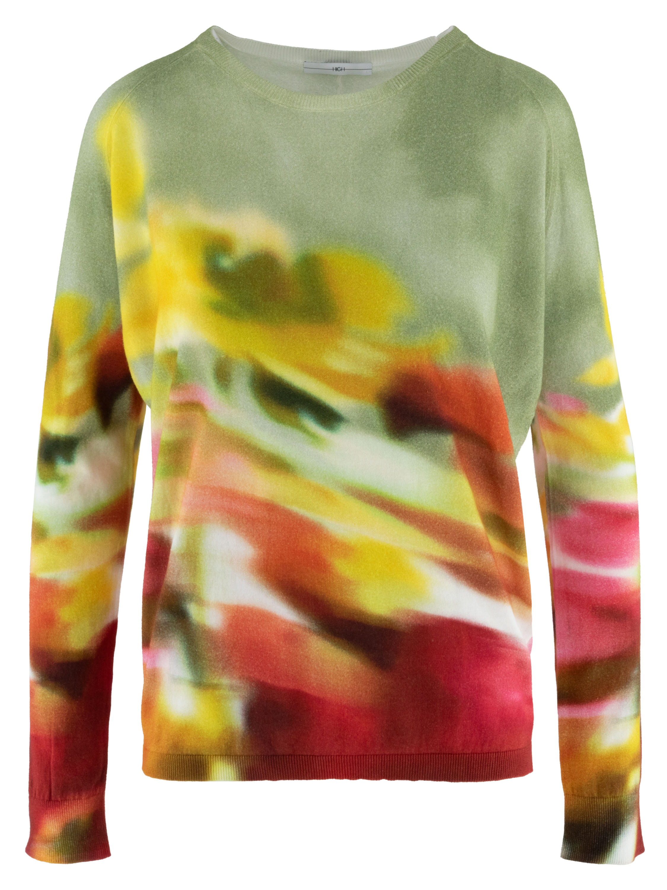A pullover from High with a graphic multicolour print, featuring olive green as the main colour. The pullover has a round neckline and long sleeves and must not be washed.