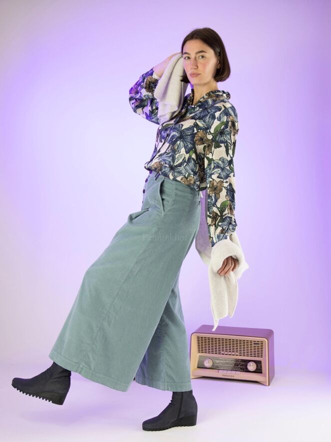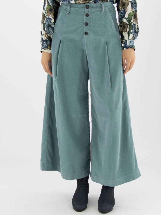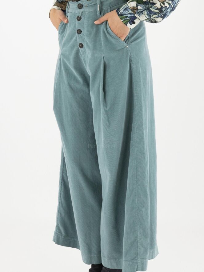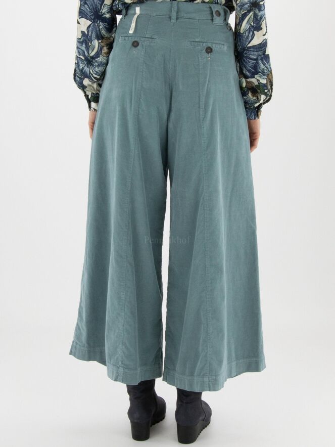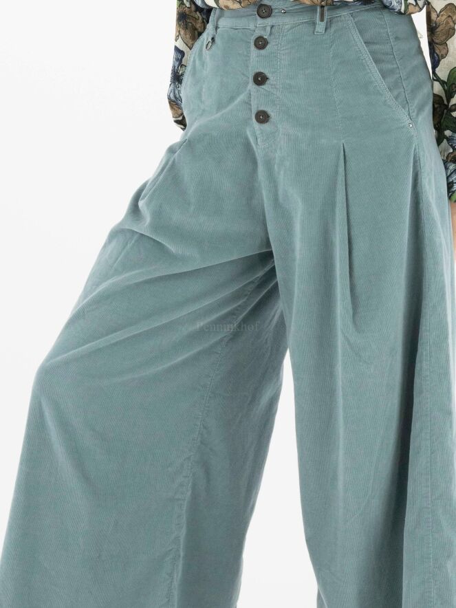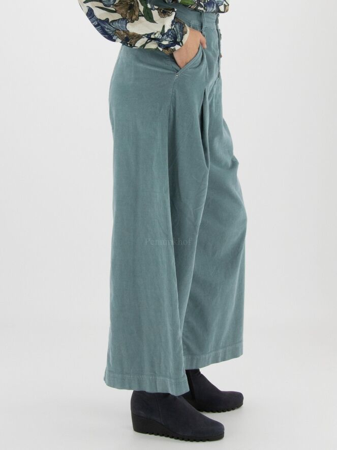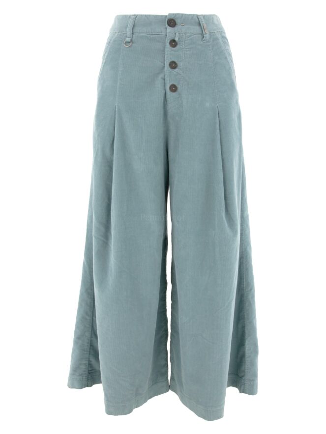 Ribcord pants from High in the color light blue. The trousers have a few pleats at the hip. The pants have side pockets and can be washed at 30 degrees.