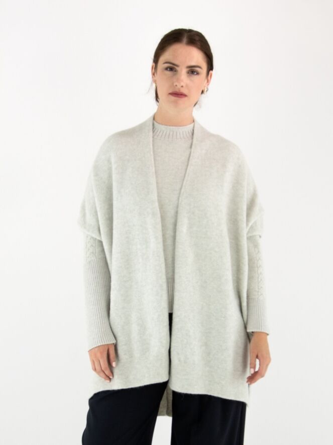 A luxurious sleeveless vest by High in light grey. The vest has no closure and should be hand-washed.