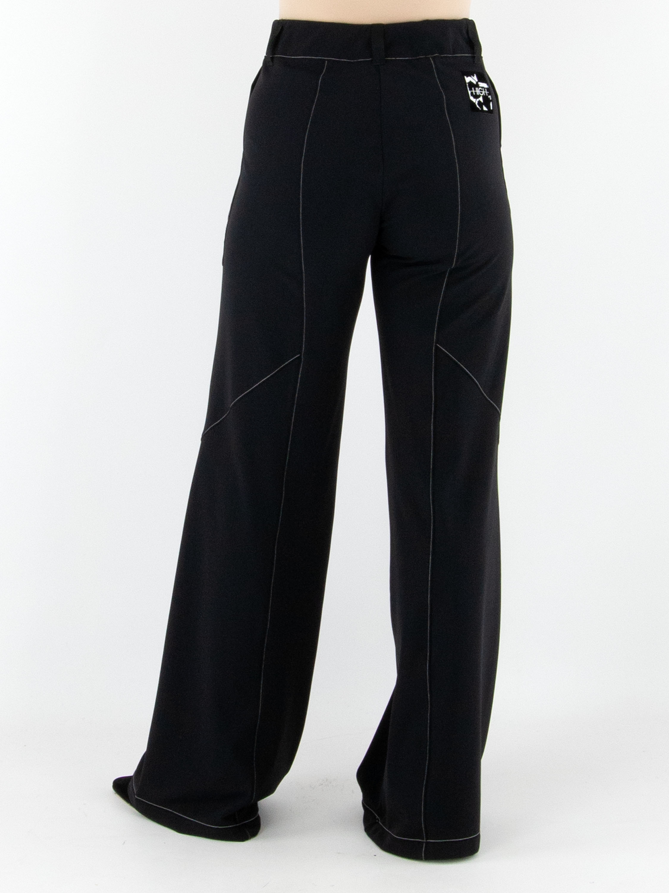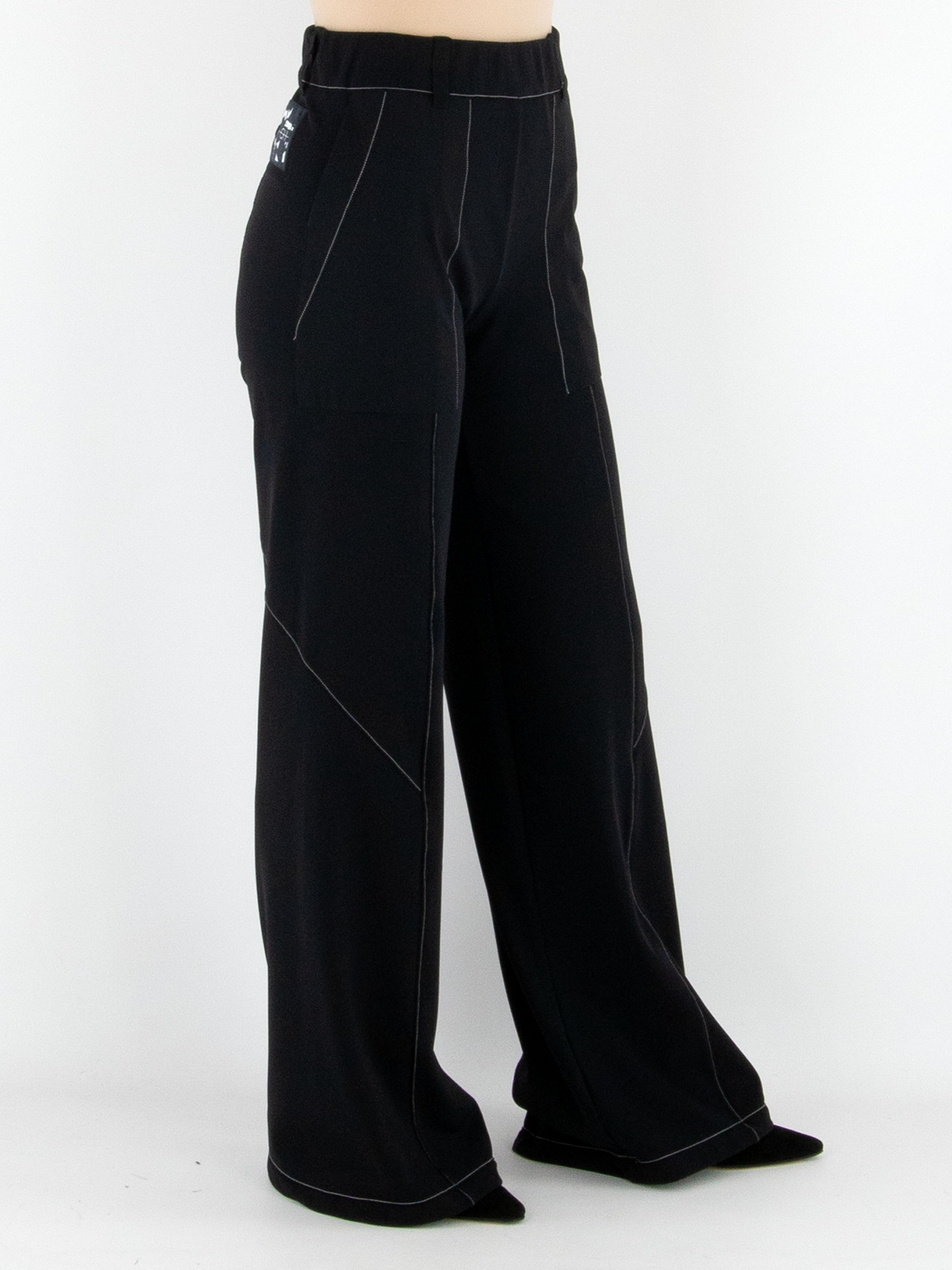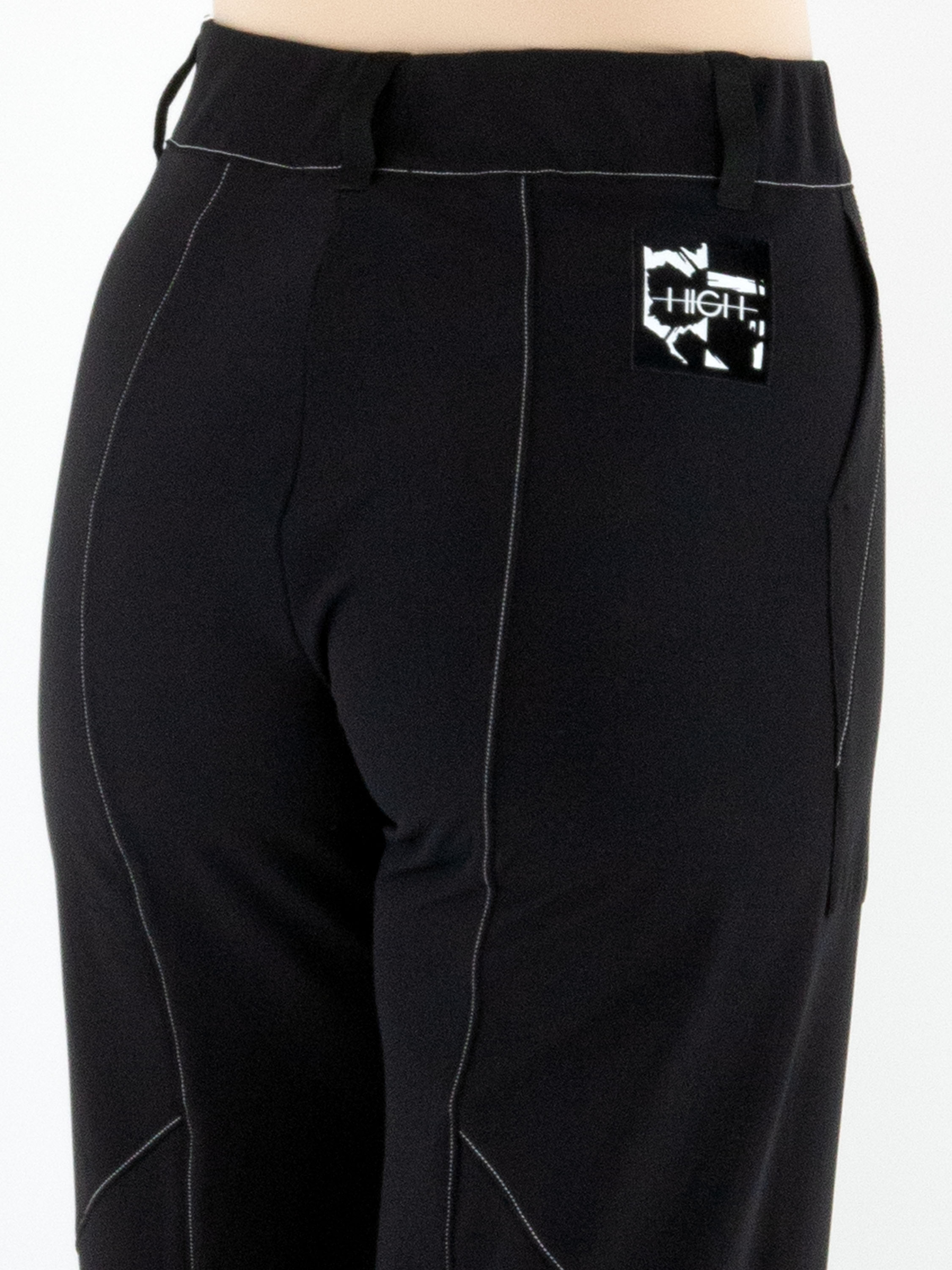 Quilted wide-leg trousers by High in elegant black. Designed with a wide elastic waistband for added comfort, this piece is finished with decorative topstitching in contrasting white. Side pockets complete this stylish and contemporary designer trouser. This exclusive women’s piece can be washed at 30 degrees.