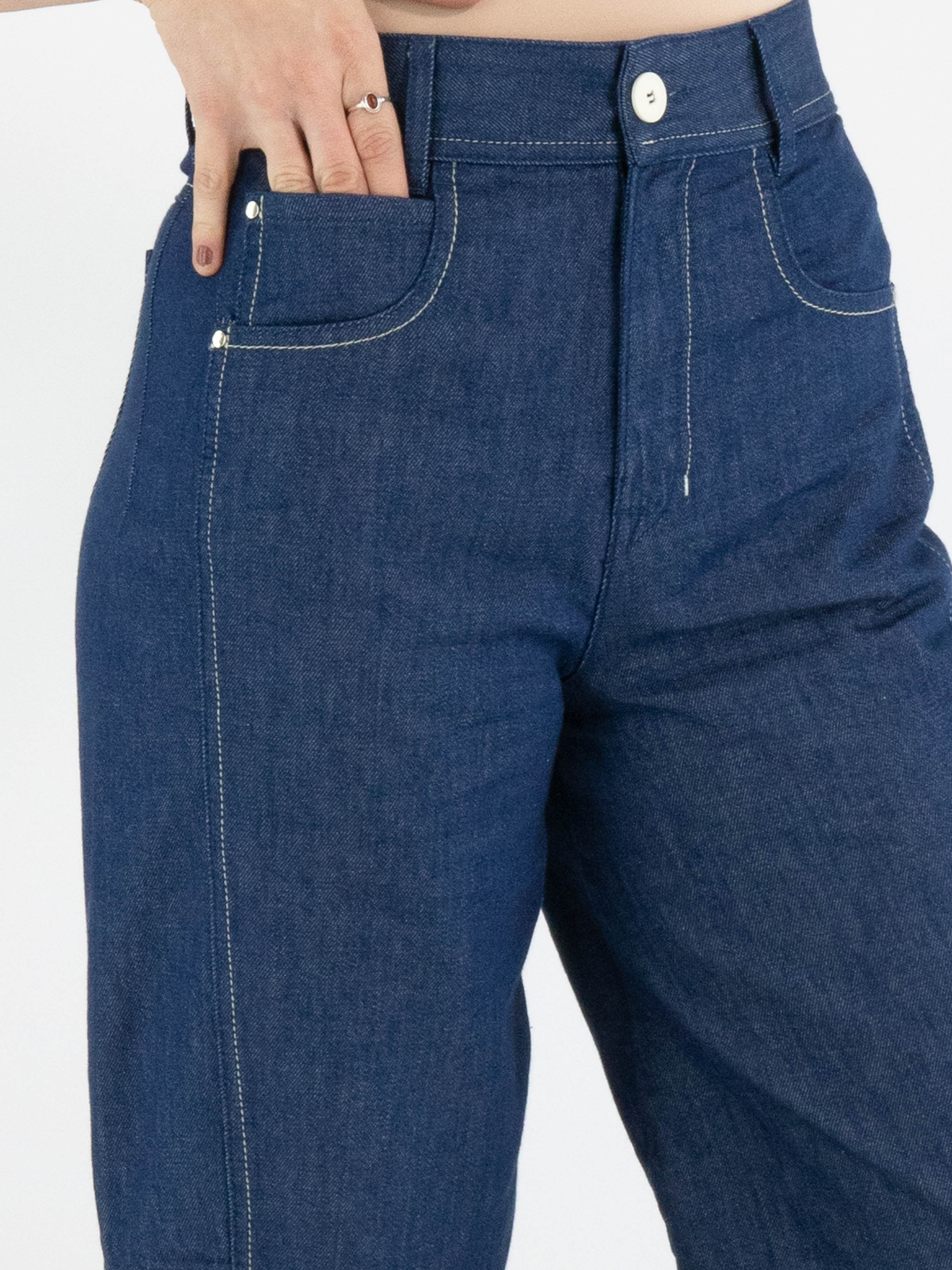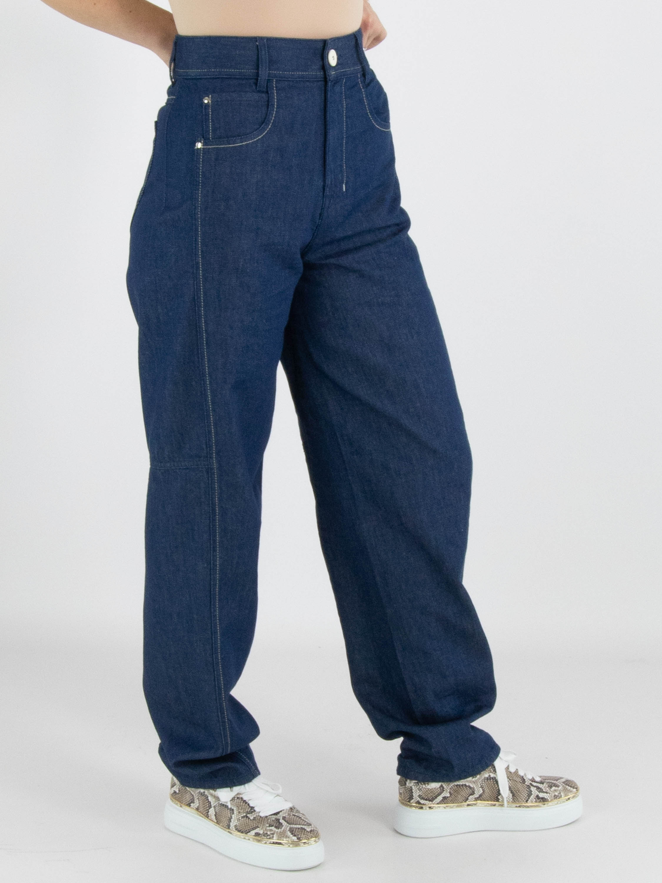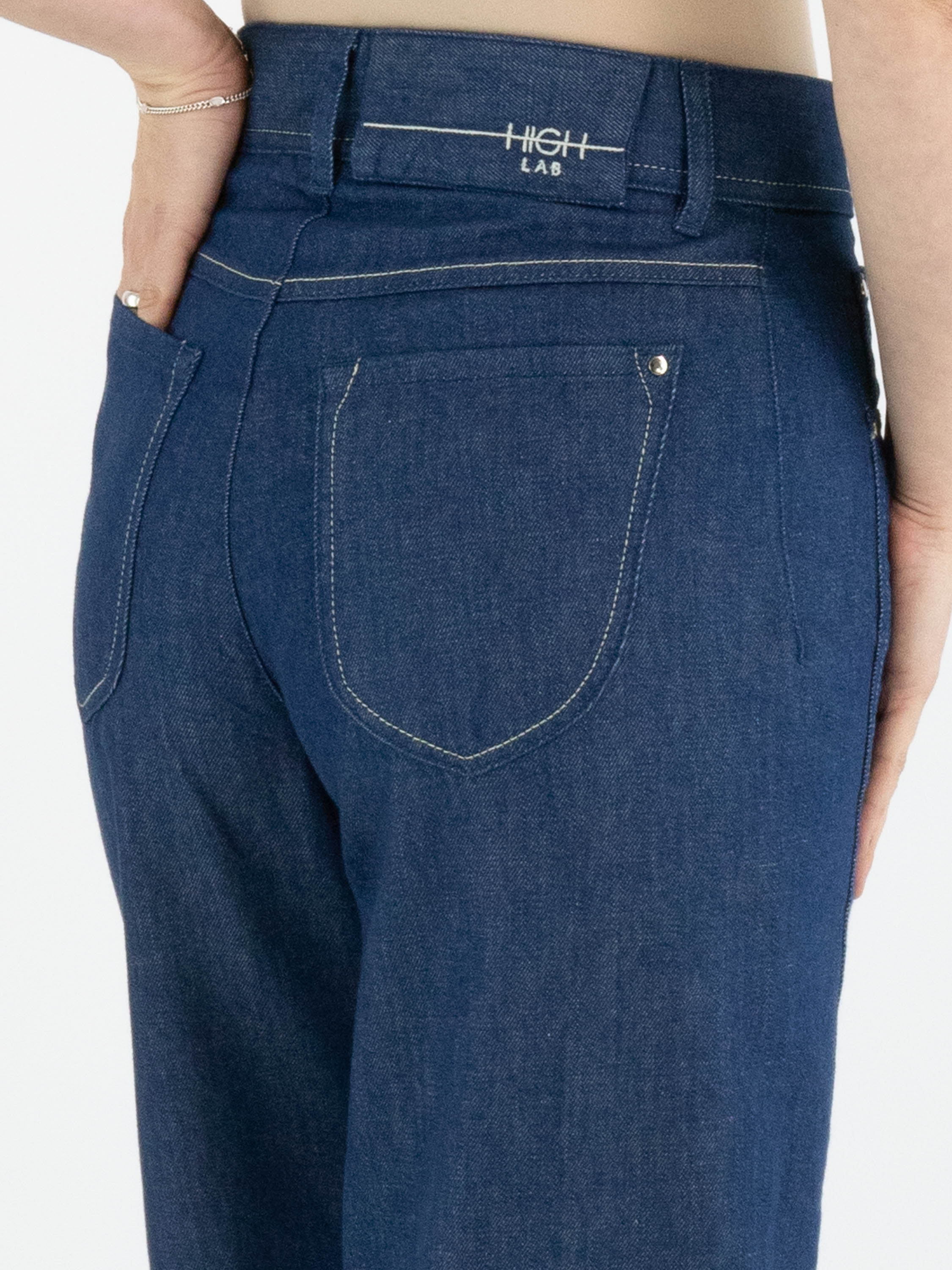 A pair of jeans from High in a bright blue denim colour. The jeans are designed in a 5-pocket style. The legs are slightly rounded in shape. These jeans can be washed at 30 degrees.