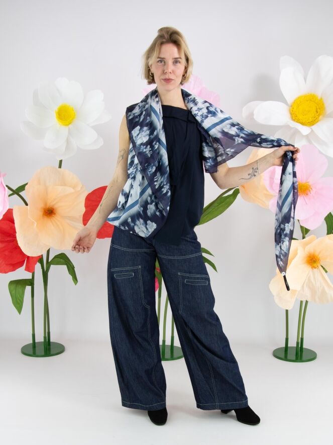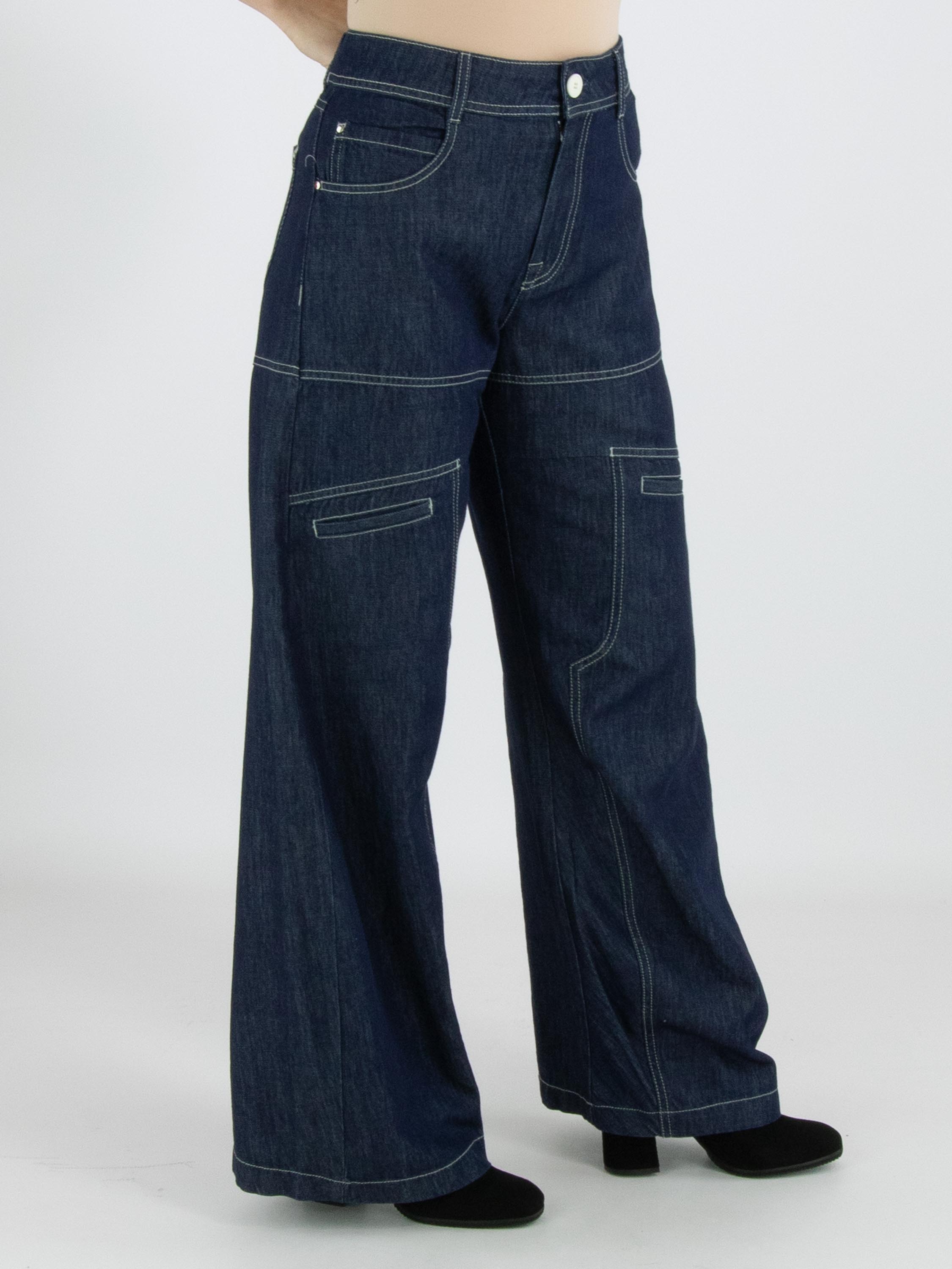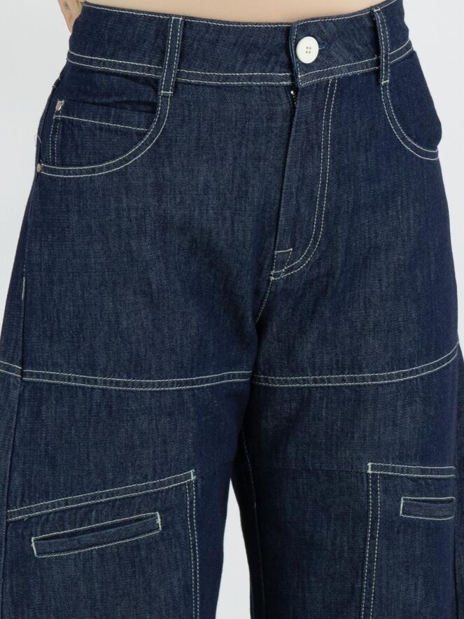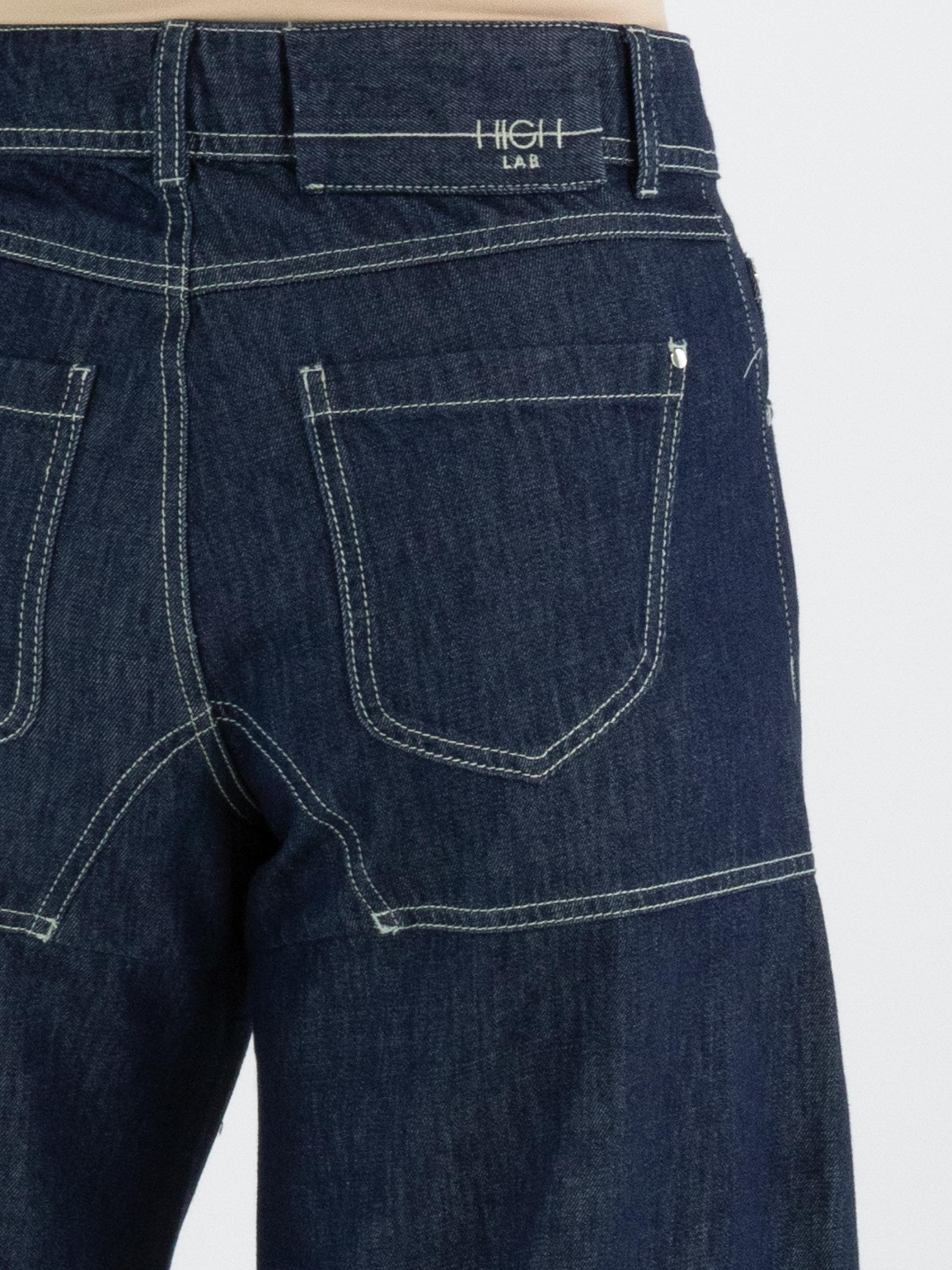 A high-waisted pair of jeans from High Lab in a dark denim colour. The jeans are designed in a 5-pocket style. Decorative seams create the effect of a second pair of jeans layered over the trousers, including pockets on the upper leg. These jeans can be washed at 30 degrees.