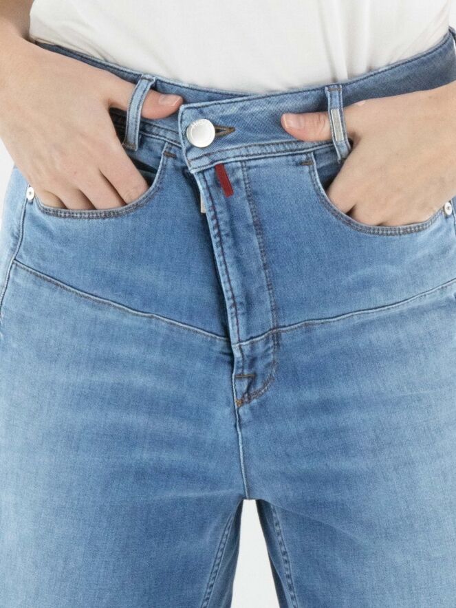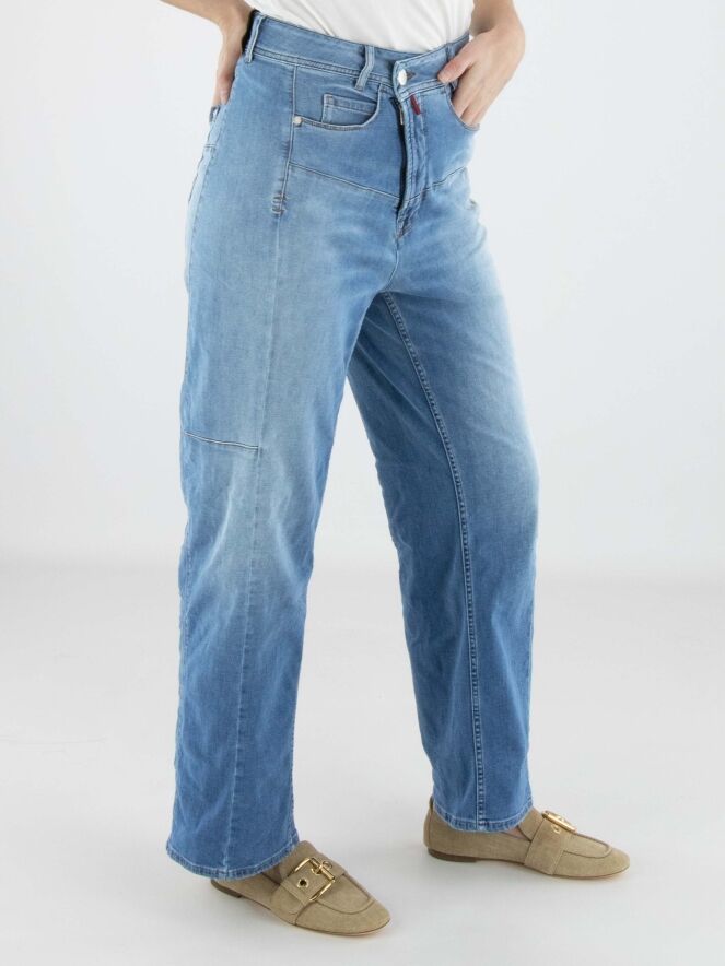 High-waisted jeans by High in a used denim shade. Designed in a classic 5-pocket style, it features a subtle shaping seam just above the knees on the outer leg, enhancing the silhouette. These exclusive designer jeans can be washed at 30 degrees.