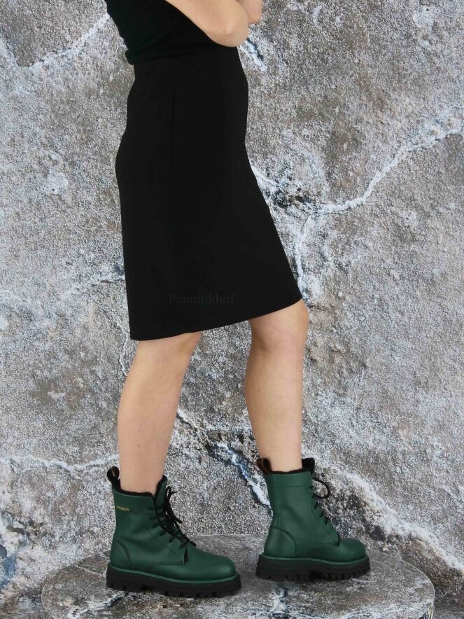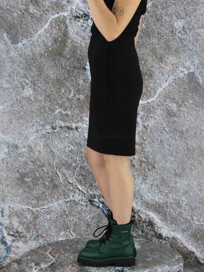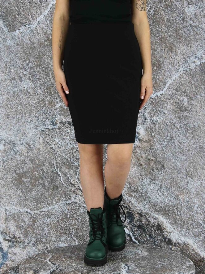 A skirt by Joseph Ribkoff in a black color. At the waist is an elastic band. The skirt is unlined and can be washed by hand.