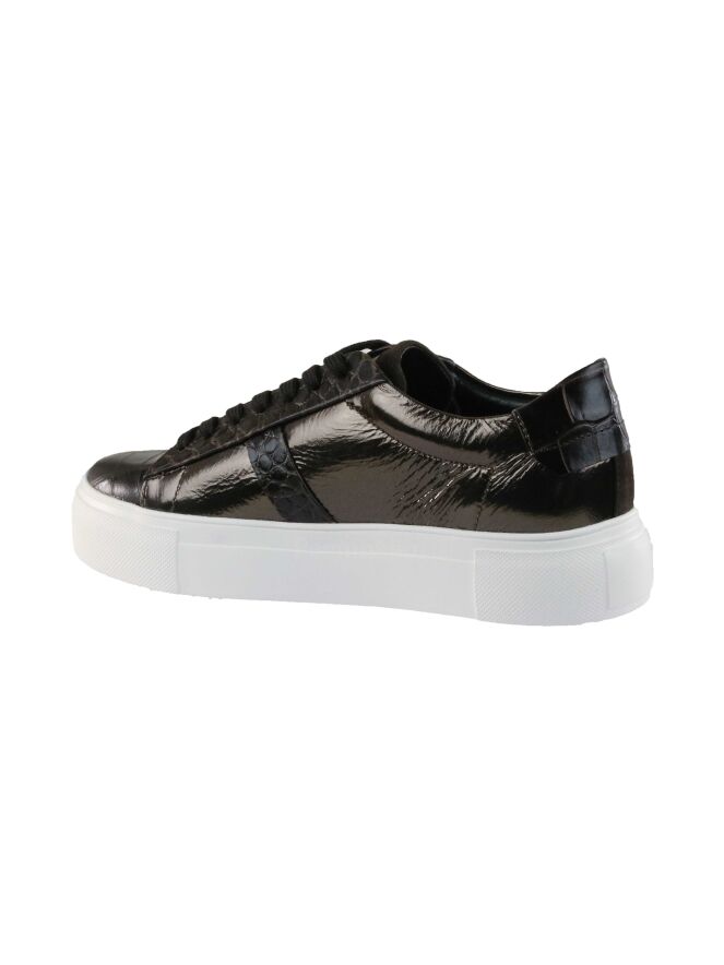 A sneaker from kennel & Schmenger in the color bronze. On the forefoot, heel and along the laces is a croco print in a mocha brown color. The sporty sole is in the color white. The insole is removable and the inside is lined with leather.