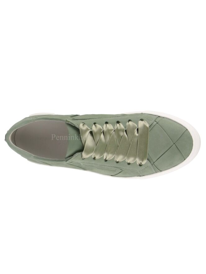 A sneaker from Kennel & Schmenger in the color mint green. The Suede has a braided structure. The laces are in a matte satin fabric. The insole is removable and the inside is lined with leather.