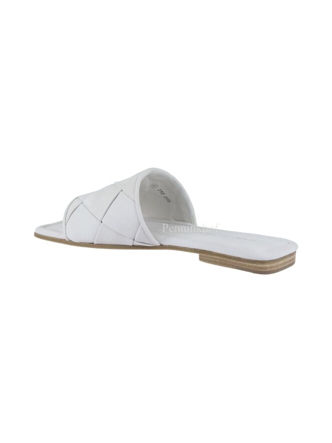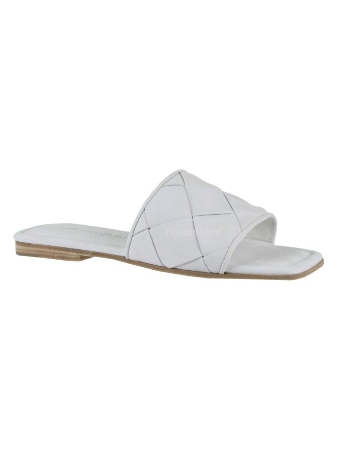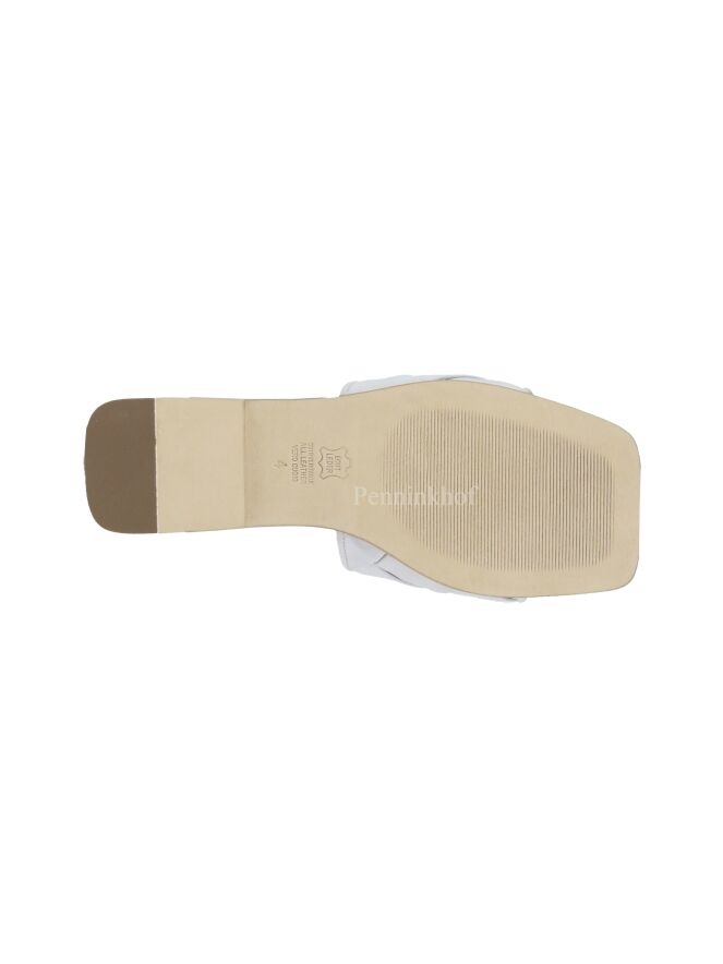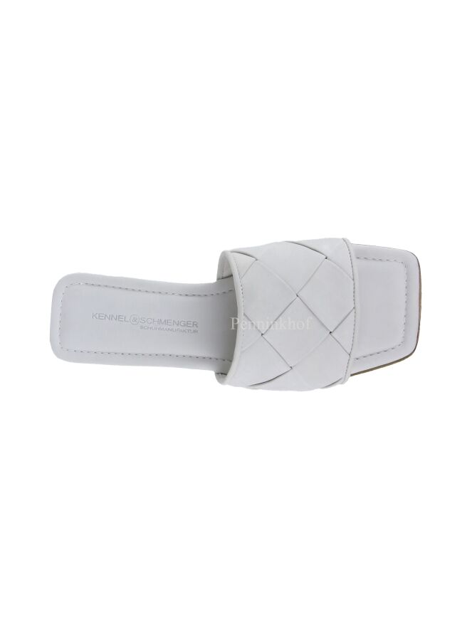 A slipper from Kennel & Schmenger in the color light gray. The wide band over the forefoot is braided. The flip flop has a square toe.