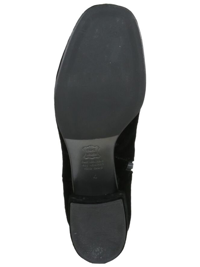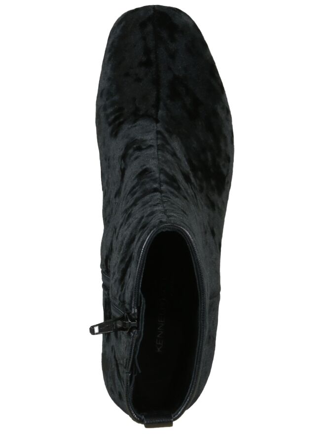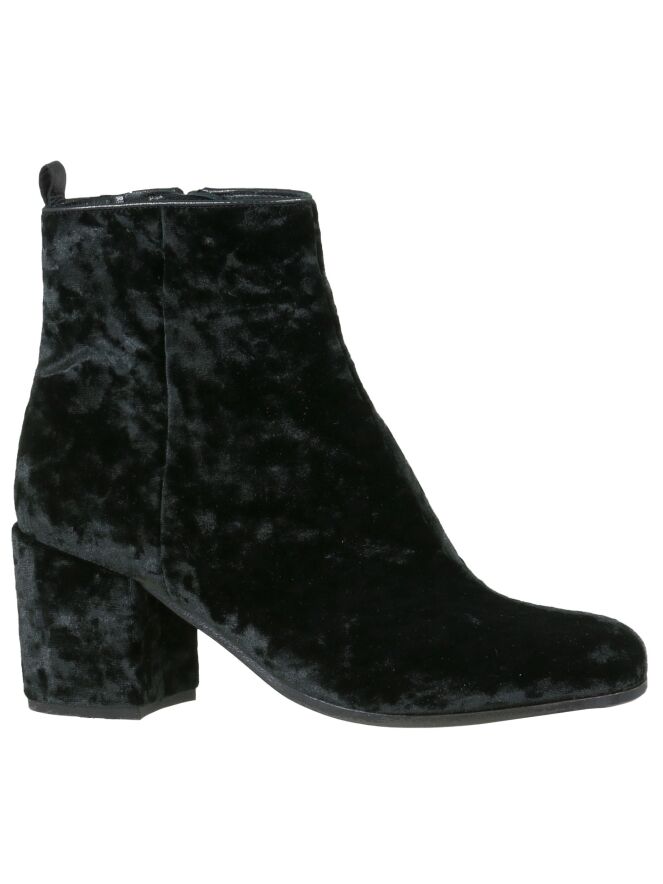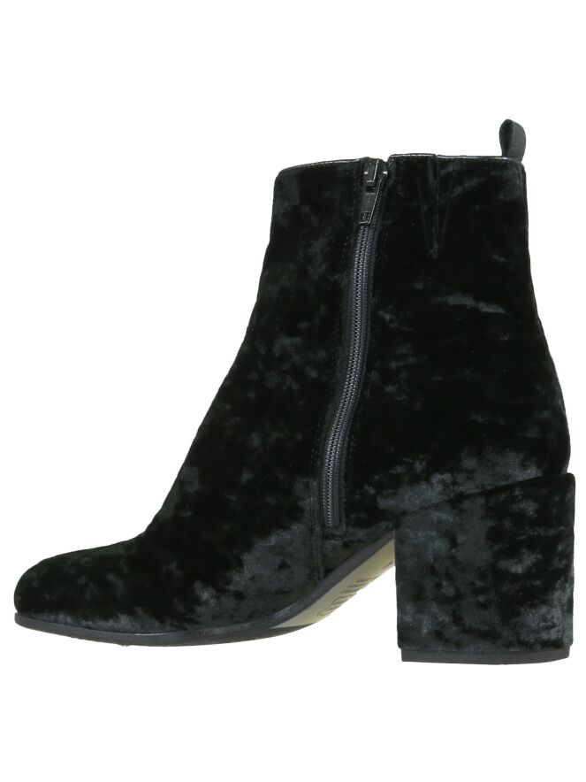 An ankleboot of the brand Kennel & Schmenger in a velvet black fabric. The boot has a rounded square toe. The sporty block shack is clothed in the same fabric as the boot. The inside is lined with leather.