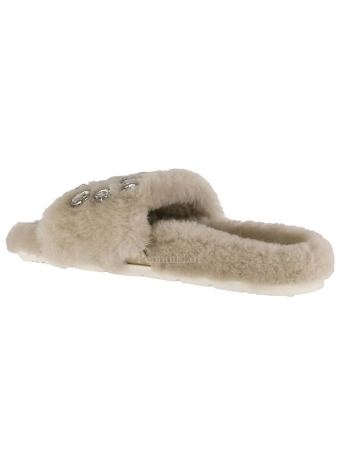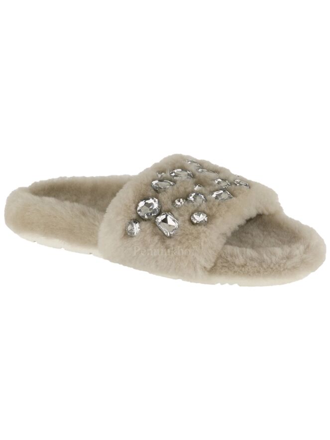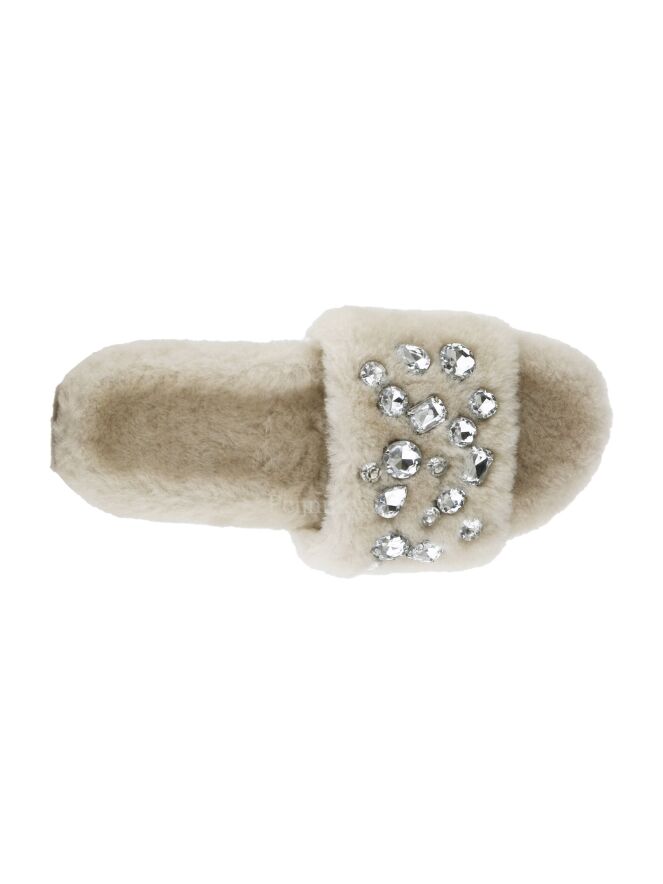 A slipper from Kennel & Schmenger in the color beige. On the forefoot are several rhinestones with different shapes.