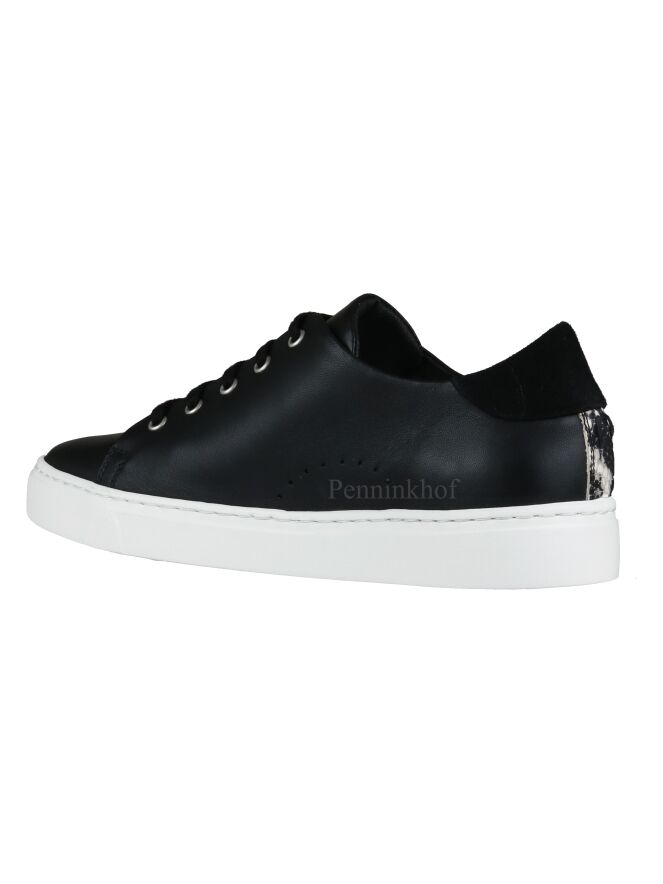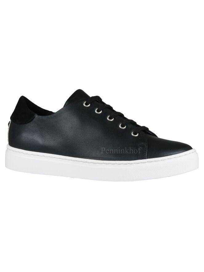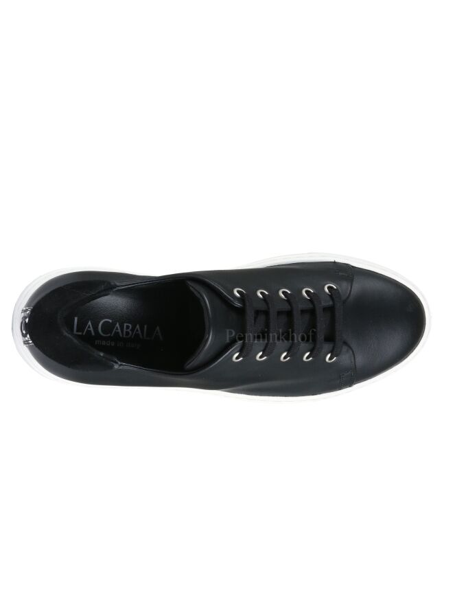 A sneaker from La Cabala in the color black. On the heel is a suede piece in the color black. The insole is removable. The inside is lined with leather.