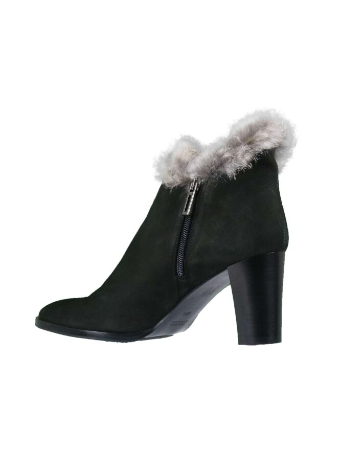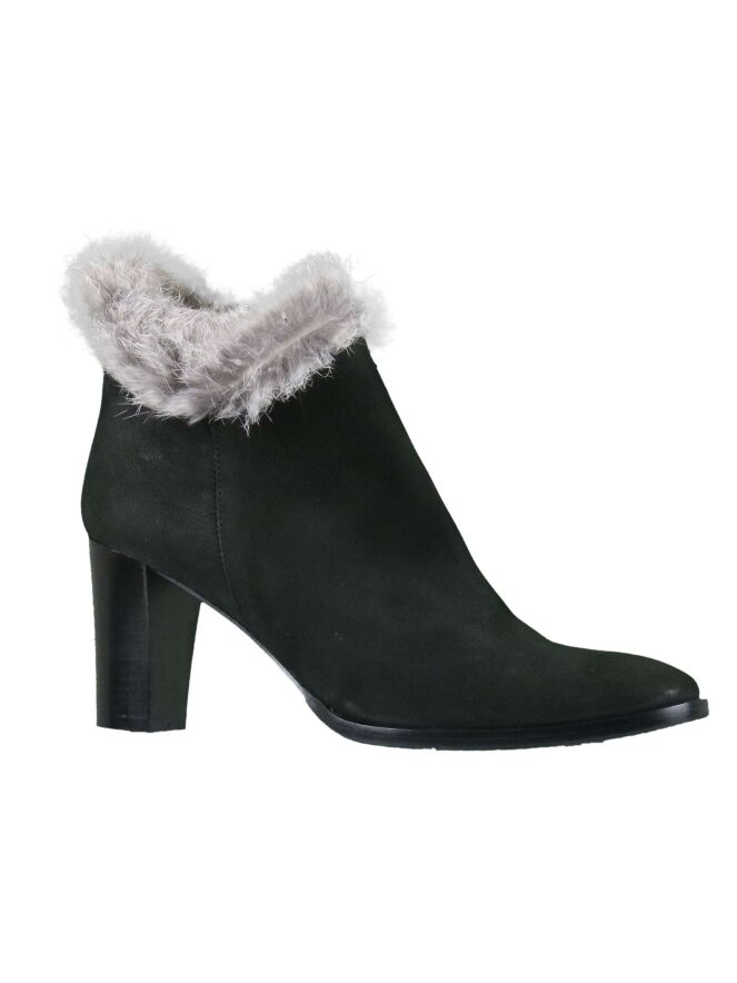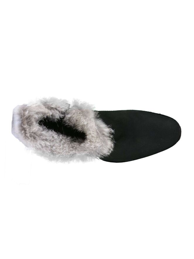 An ankle boot from Luca mode in the color black. Along the edge of the shaft is a fur trim. The boot has a round toe and the inside is lined with leather.
