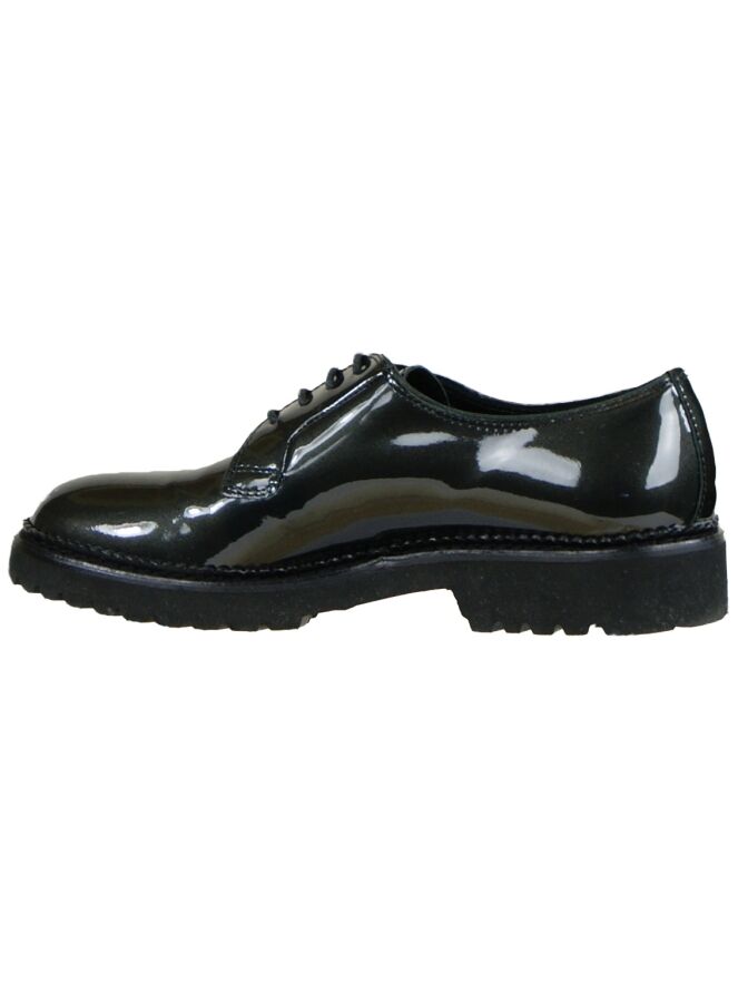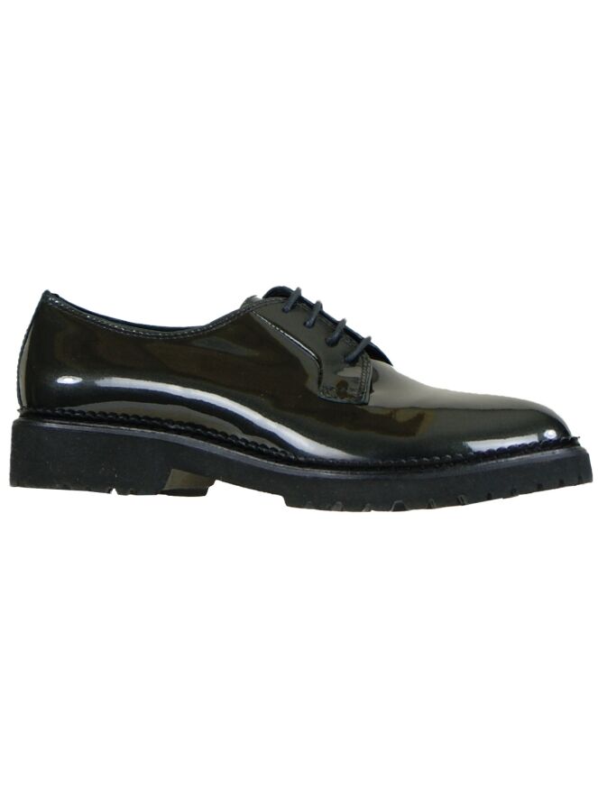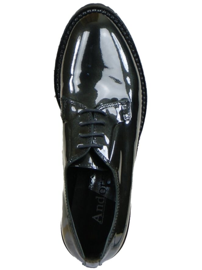 A lace-up shoes of the brand Luca Mode in the color antracite. The shoe is in a lacquer leather with a sporty grove sole . Along the sole runs a zipper processing. The shoe is lined with leather.
