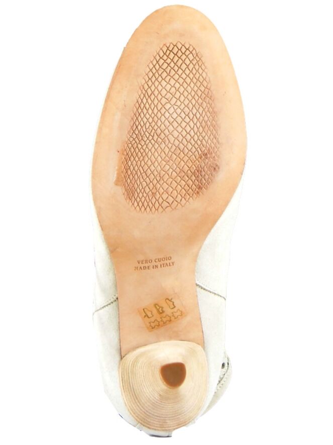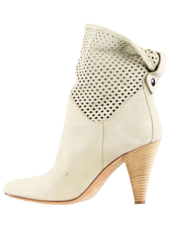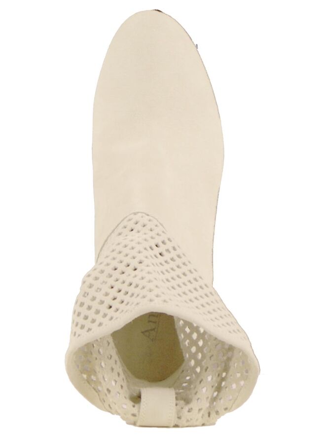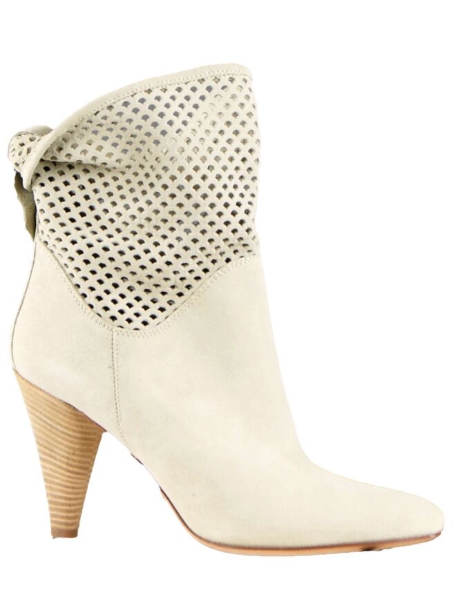 A short boot of the brand Luca Mode in a beige color. The short shaft is perforated and at the back is a short band that creates a folder in the leather. The boot is on the inside unlined.