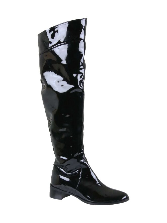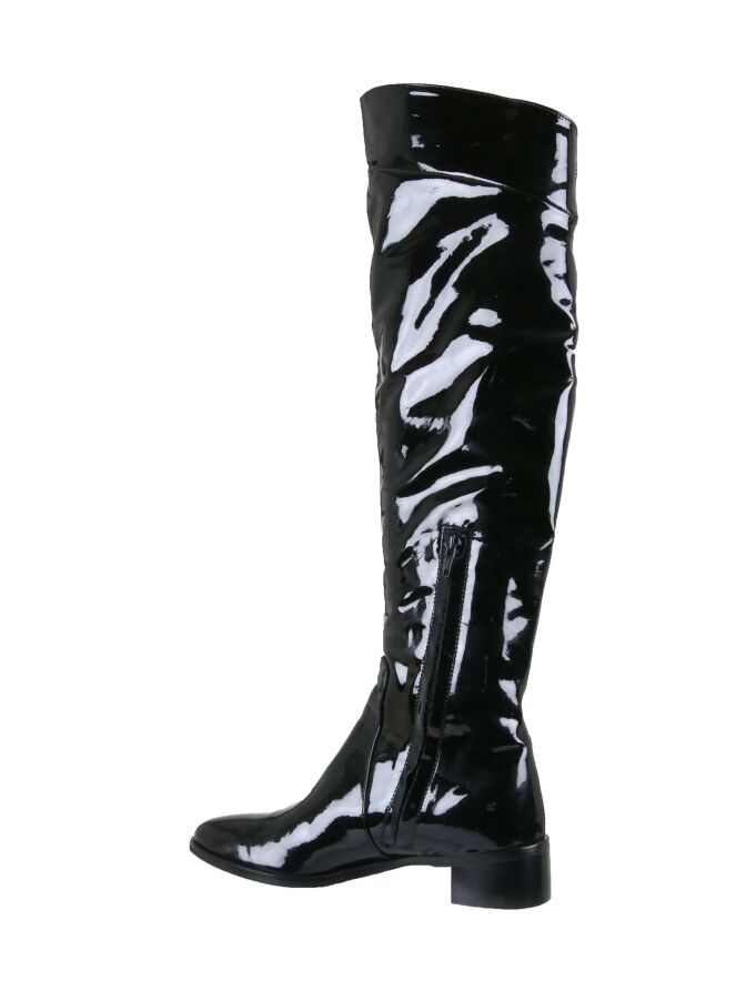 A knee boot from Luca fashion in the color black. On the inside there is a zipper up to the middle of the shaft. The boot has a round nose and the inside of the boot is lined with leather.